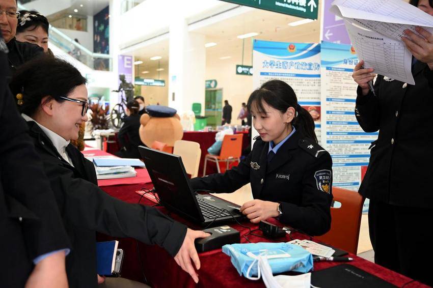 咨询区内,民警罗潇璨、辅警罗娜耐心解答“新生儿落户需要哪些材料?”“孩子出国旅游,办理护照需要监护人到场”等高频户籍问题,同步发放办事指南。