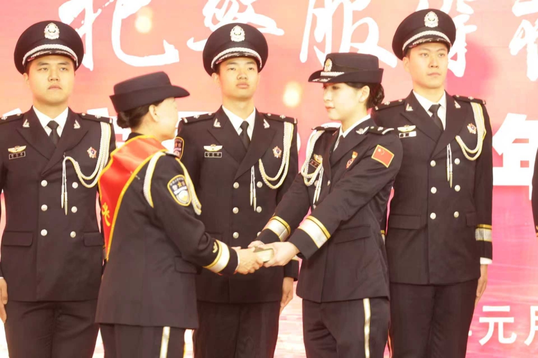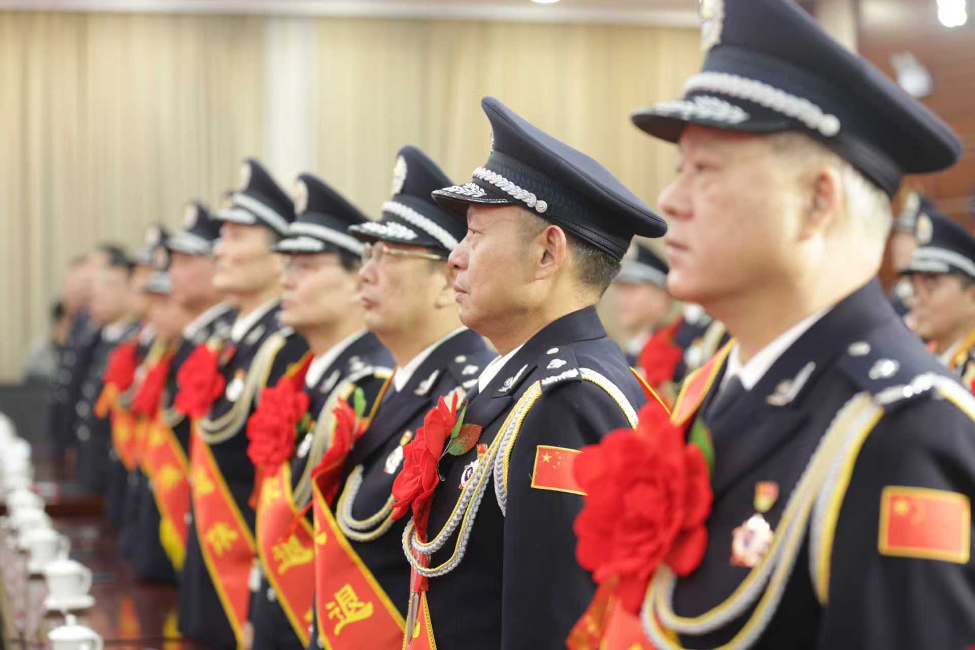 仪式现场,退休民警的照片在主席台大屏幕上滚动播出。一张张照片记录着他们在执法一线、社区走访、伏案工作中的忙碌身影,一段段难忘的从警岁月引发全场共鸣。