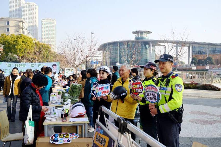 “骑电动自行车需注意什么?”“佩戴安全头盔!”交通安全宣传区传来响亮的问答声,随之响起阵阵笑声与掌声。交通管理大队“汉警快骑”队员郑蓓蓓、周海笑容明朗,开展有奖互动问答活动,成为现场一道靓丽风景。答对题的市民开心地接过作为奖品的头盔。“这个奖品真好!以后骑车出门正好用上!”一名成功答题的群众拿着头盔,兴奋地同民警合影留念。