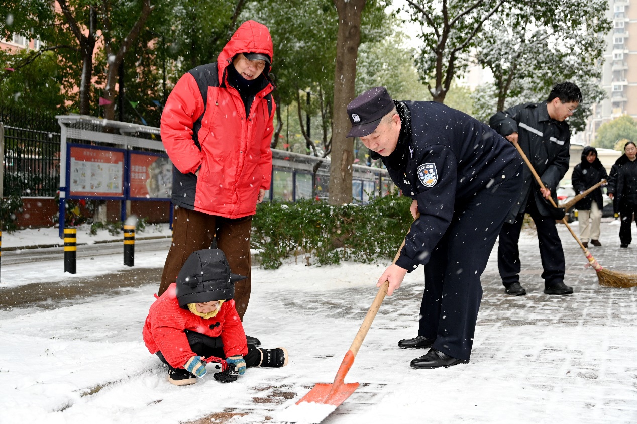 严格落实领导带班、值班备勤等制度,确保紧急情况第一时间响应、处置、反馈。全面加强一线执勤民辅警保障,配齐挂肩警示灯、发光指挥棒等防护装备,提供热水、保暖物资,在守护群众安全的同时,全力保障民警辅警身心健康。第七综合警务服务站教导员张伟等人看到环卫工人冒雪作业,主动邀请其进屋取暖、递上热水,用暖心举措凝聚起警民同心抗雪的强大合力。