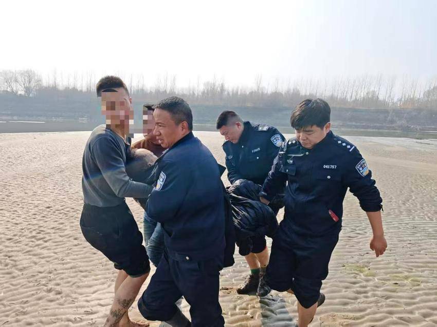 老人所在的地点离大家的直线距离接近2公里,为了能最快速度找到老人,高东立即操作无人机飞向出发点,为地面救援组充当“导航员”。在车辆行驶到距离老人还有300米时,3辆救援警车中有2辆都陷进了沙地,大家只好下车步行,深一脚浅一脚地向老人跑去,冰冷的泥浆瞬间没过了小腿,所有人的皮鞋和裤腿都灌满了泥沙,但他们顾不上这些,以最快速度来到老人身边。