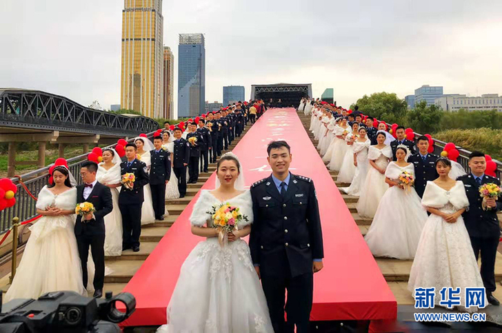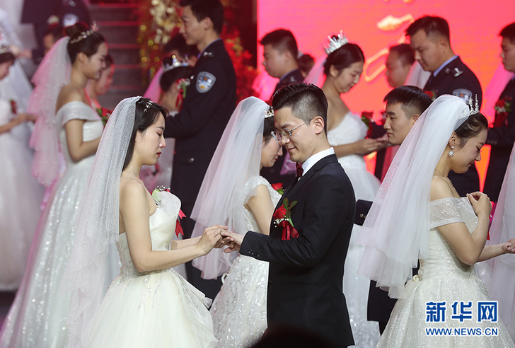 图为“2019汉警集体婚礼”现场。新华网发 应后威摄