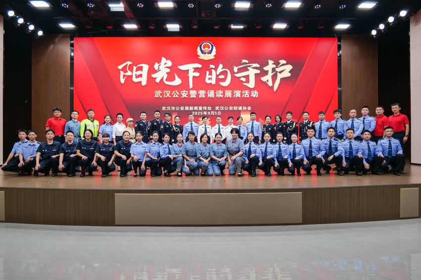 2025年9月5日下午,武汉市公安局新闻宣传处与武汉公安朗诵协会共同举办了“阳光下的守护”警营诵读展演活动。活动通过朗诵、舞蹈、情景剧等多种形式,呈现公安民警在不同历史时期与岗位上的守护与奉献。