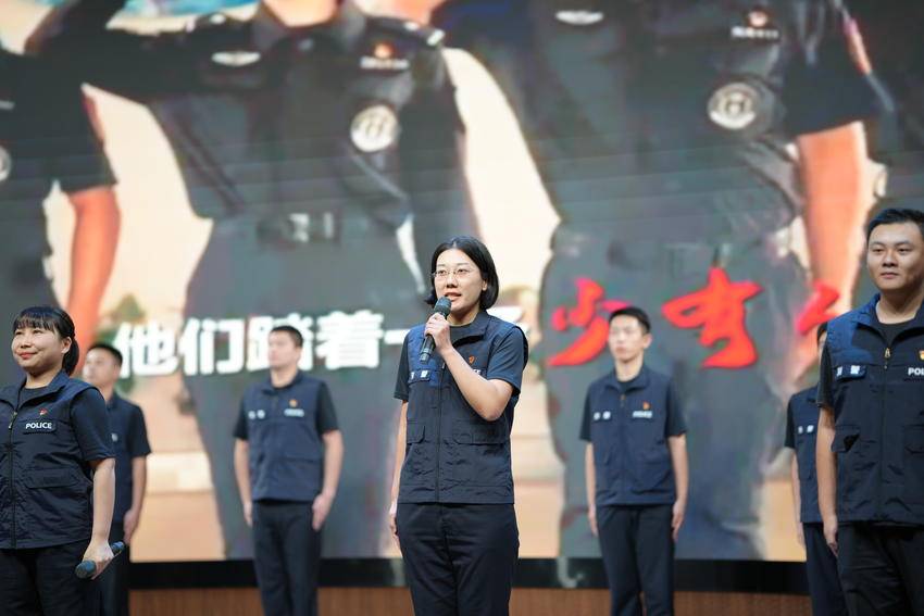 诗朗诵《我是刑警》由东西湖区分局民警辅警合作完成,通过多声部交织,再现刑警在反诈、扫黑、禁毒、科技侦查等多条战线的工作实态。参演民警胡冰博士表示:“排练和演出让我更加体会到刑警职业的艰辛与光荣,也坚定了自己用专业与忠诚守护正义的信念。”