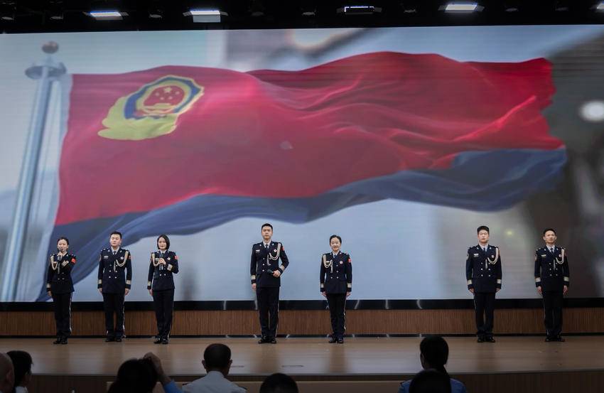 压轴节目《当你凝视这一面旗》由武汉公安朗诵协会演出,以旗帜为象征,串联起公安队伍的历史与现在、初心与使命,将整场活动推向高潮。