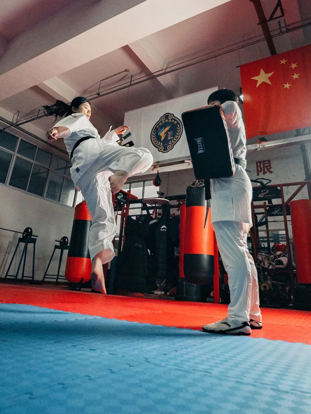 许家敏进行跆拳道训练