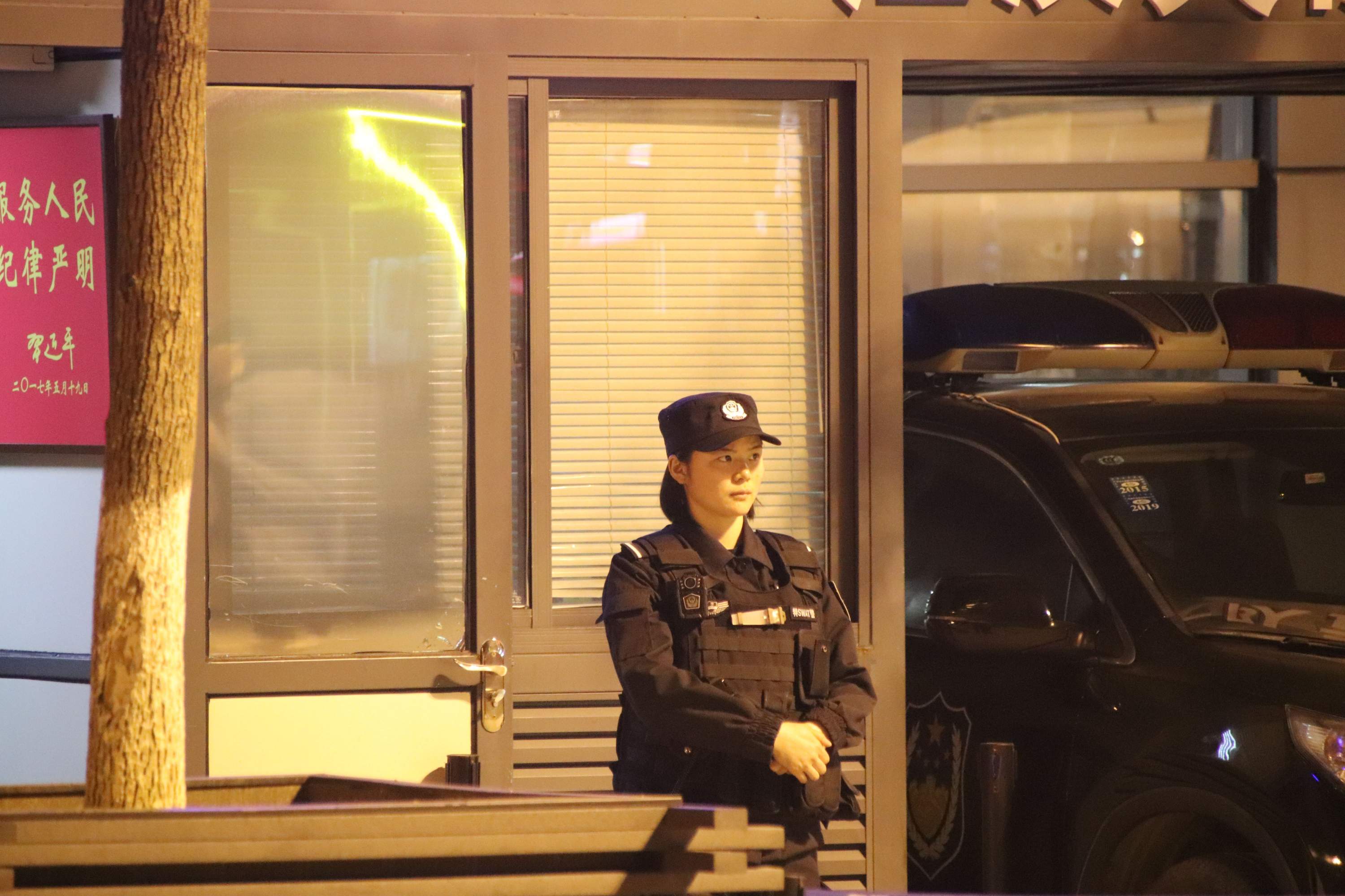 黄玉在汉口火车站街头执勤。通讯员张帅摄