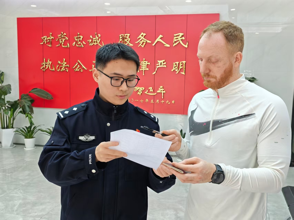 除了在办案一线拆解迷局,他的语言专业能力,也成为了派出所涉外服务的一张名片。精通英语、日语的他,常常主动承担涉外警情处置与接待工作,面对前来求助、报案的外籍人士,总能用流利的外语精准厘清诉求,耐心讲解中国法律法规,既化解了语言壁垒带来的沟通困境,也用专业、温和的态度,让身处异乡的外籍人士感受到实打实的安全感。