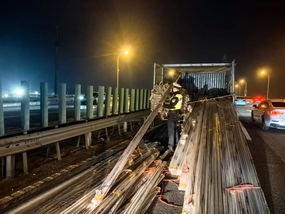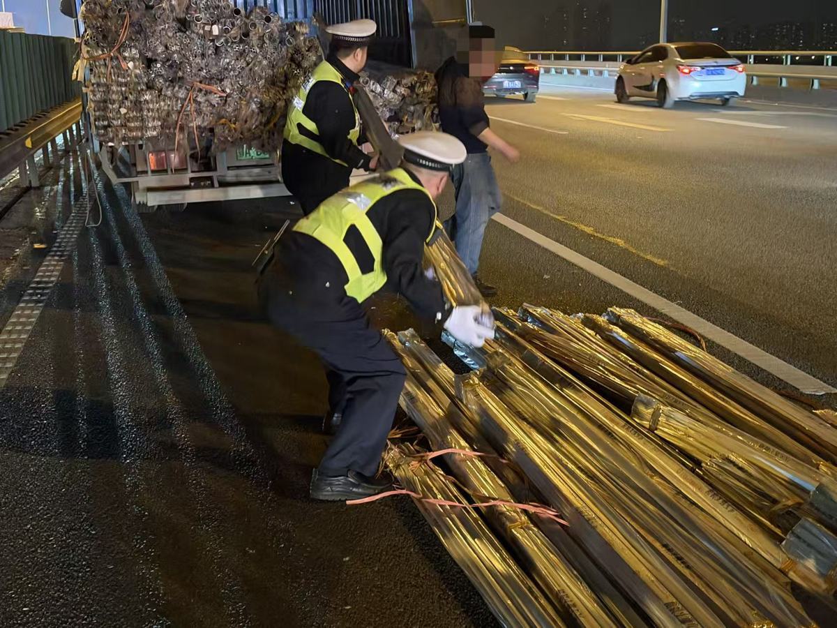 超长钢管变“拦路虎”,武汉汉阳交警快速排险保畅通
