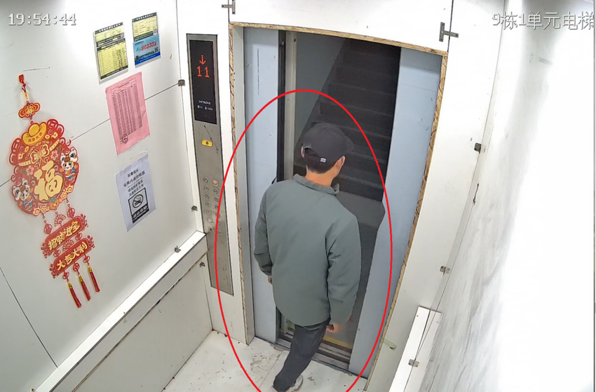 民警没有气馁,不断攻坚克难。在排查到一个小区高空公共视频时,民警敏锐发现了线索。“灯同时亮了!”视频显示,在3月30日晚,受害人所在的7栋11楼,与正对向的9栋11楼的楼道声控灯,同时亮灯数次。民警立即调取了该楼栋电梯内视频录像,最终锁定了嫌疑人。