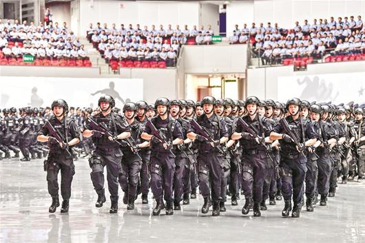 昨日下午,在武汉五环体育中心,庄严的国歌奏响。武汉警方宣布,全市公安机关“忠诚保大庆、强警护军运”百日冲刺大巡控正式启动。