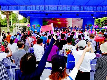 警民轮番登台,演出了热烈昂扬的歌舞、朗诵节目,主持人穿插着向居民们提问,怎样正确养犬?“一标三实”是啥?有什么作用?抢答正确的居民们得到了灭火器、食用油等礼品,引来邻座居民羡慕的目光。演出同时,民警还向观众发放防火、防盗、防骗宣传资料。活动最后,居民们争相在“警民同参与,平安保军运”签名墙上签名留言。