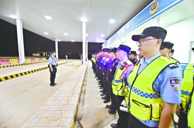 民警在“环城护城河”公安检查站集结演练