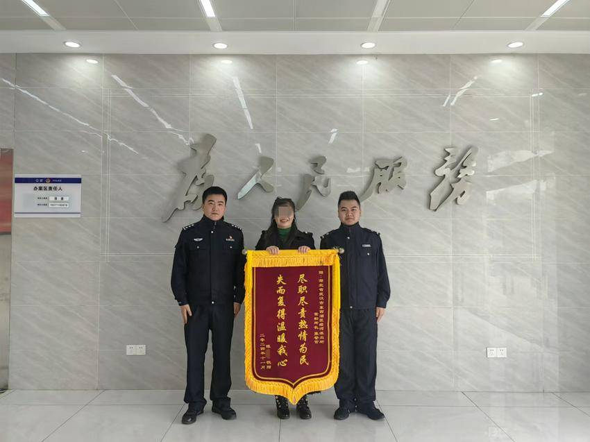 “失而复得,温暖我心。”11月22日,辖区居民陈女士带着一面锦旗,来到武汉市公安局东西湖区分局径河派出所内,亲手将这份感谢送给副所长常松、辅警张一凡同志。
