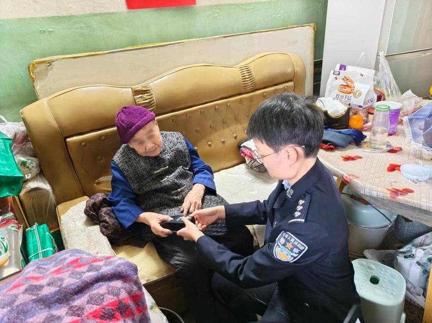“您别着急,我们这就上门!”团队民警赵洁立刻带领辅警李欢、刘俊背起移动办证设备出发。赶到陈婆婆家时,老人因年事已高行动不便,两人在狭小的房间里来回挪动,为老人垫起枕头调整姿势,拉开窗帘寻找柔和自然光,甚至蹲在地上调试设备角度,连拍十余次才拍出符合标准的证件照。