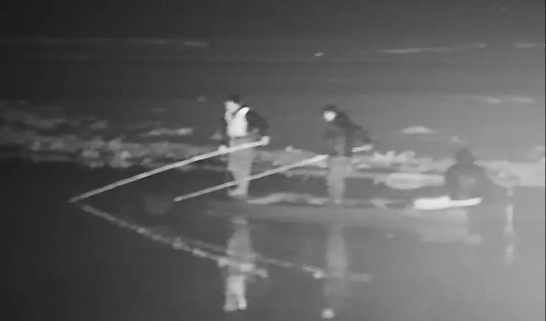 渔政指挥中心通过天网系统紧盯该团伙动向,到14日凌晨发现:一艘“幽灵船”贴着江面无声靠向了岸边,下来一个人形热源。