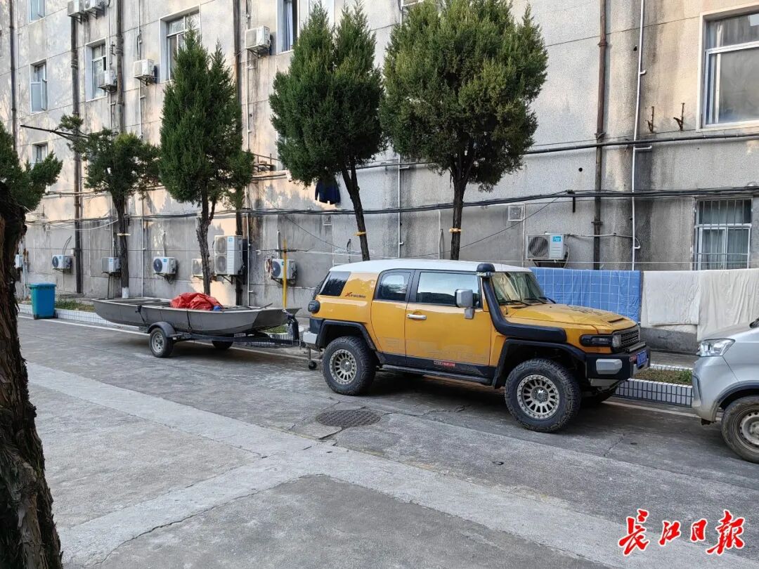 船身下方,配备了带有轮胎的专用拖架。船头处,特别设计了一个快速松脱装置。这些“巧思”都是为了方便驾驶越野车将船只随机拖到一处江滩,然后快速下江“搞鱼”,并快速收回船只。
