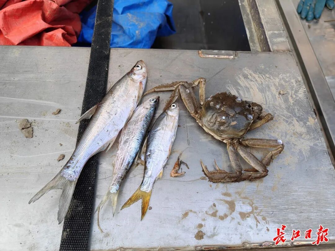 1月14日,武汉渔政和武汉水上公安在长江天兴洲夹江北岸查获一个电鱼团伙,现场查获鲤、鲢、鳙、红尾鲌、江黄颡、黄尾鲴、长春鳊、大白刁、鲹、蟹等10种、共计115.55公斤,“三无”船只1艘、电鱼设备1套、网具3副、越野车1辆、活鱼车1辆。