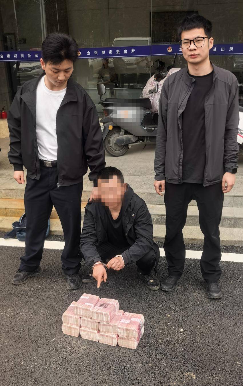 “上!”神秘男子刚伸手,接过赵女士手中的现金袋后,快反力量迅速从四个方向合围,于13时许,将嫌疑人舒某当场抓获,现场查获涉诈现金50万元以及作案手机一部。经现场突审,舒某交代,其通过线上“接单”,专程从外市打车来到武汉上门“取货”。另有50万元现金,尚在受害人家中,等待第二名“取手”上门。