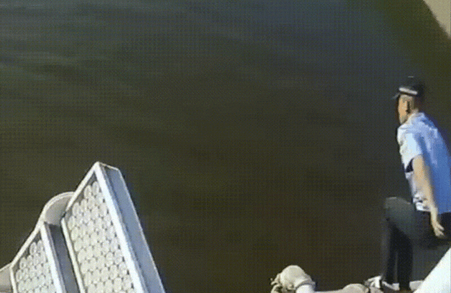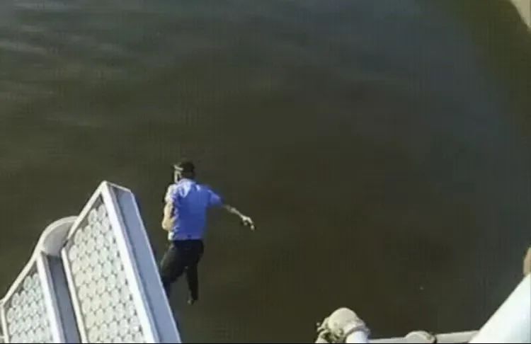 救人要紧!辅警韩靖几乎没有犹豫,立刻翻越护栏,脱掉鞋子、警用装备,也跟着跳了下去。