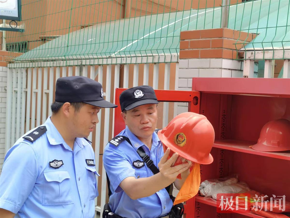 民警重点对校园“一键报警”系统、消防安全器材、视频监控系统、校园内部安保力量配备等方面进行了全面细致的检查,在保安室内查看了安保人员“八大件”安防设施,对“人防、物防、技防”措施进行了针对性指导。