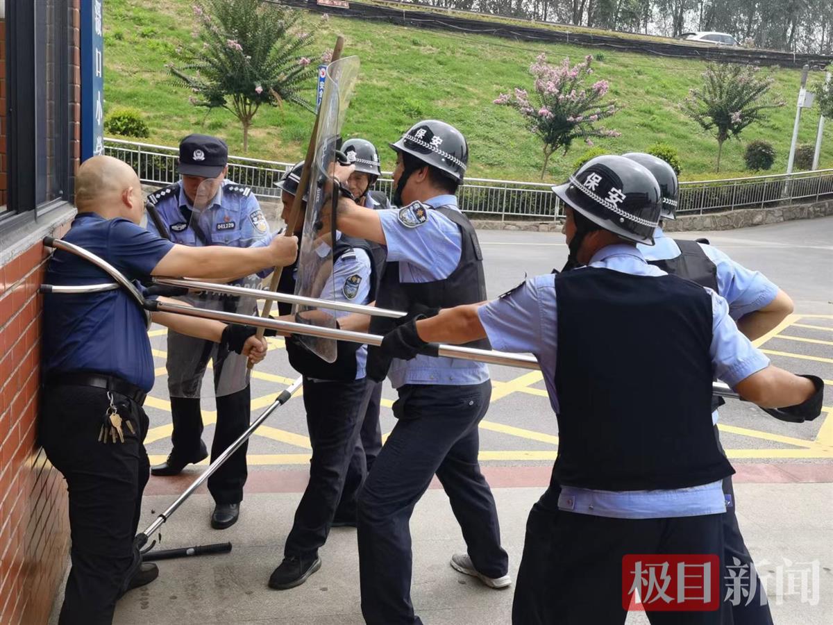 民警向校方负责人及安保人员详细介绍了反恐防暴知识和器械使用方法,开展了技能培训,为应急演练做好了充分准备。随后,民警模拟了“歹徒”手持凶器闯入校园的场景,组织全体安保人员应对有序、默契配合,熟练掌握使用盾牌、钢叉、长棍等器械制伏“歹徒”。