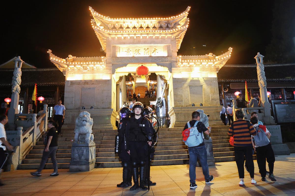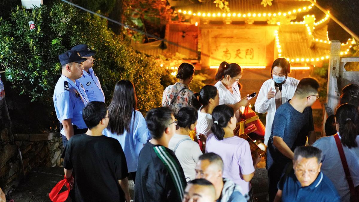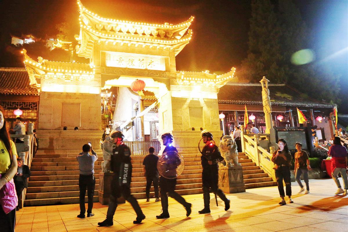9月14日,一年一度的木兰山民俗活动——“农历八月初一开山门”在夜色中拉开序幕,连绵不绝的警灯沿着蜿蜒崎岖的山路直至木兰金顶,全力守护万名游客登山祈福。
