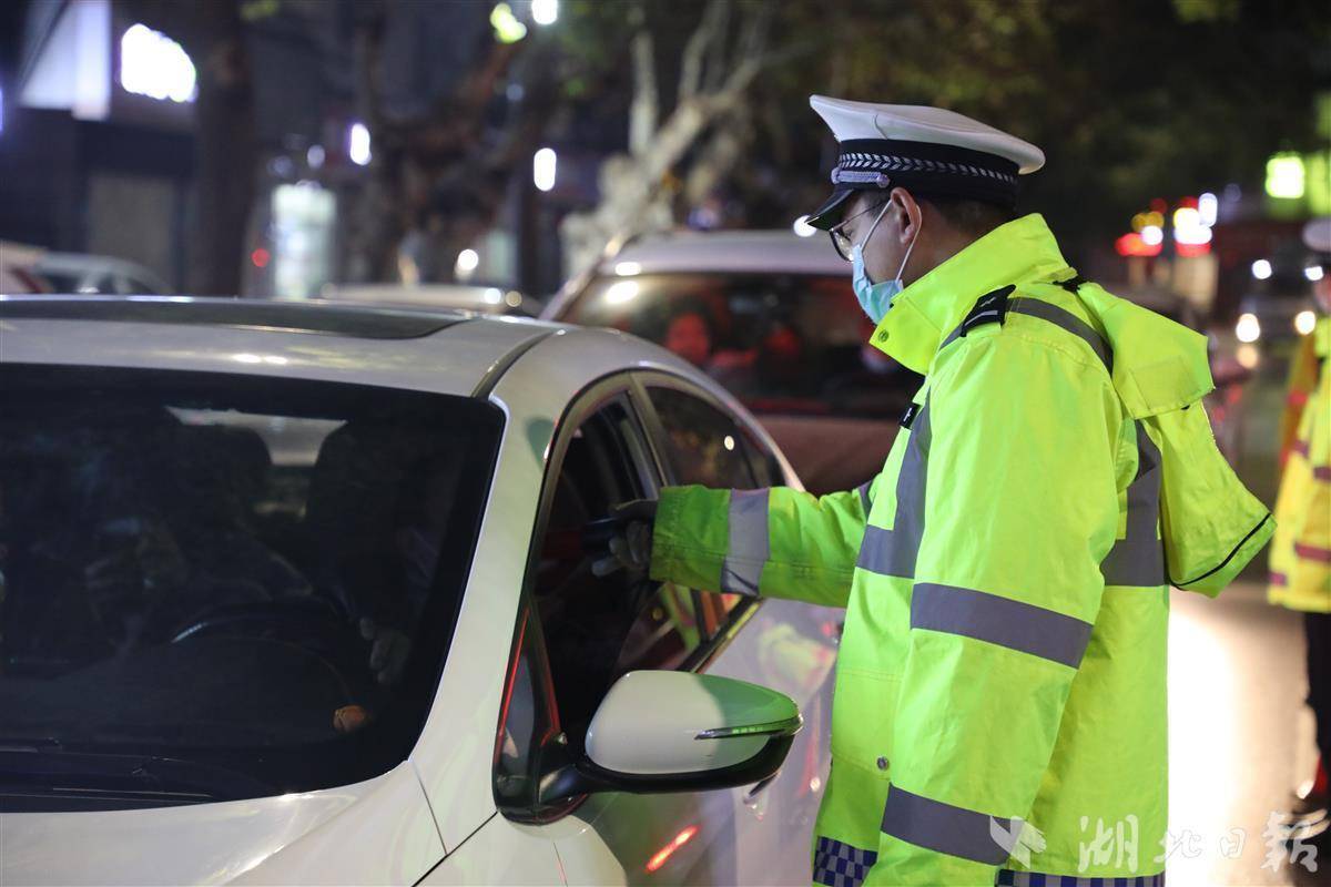 “你好,请出示驾驶证。”11月6日晚,蔡甸区交通大队中法城交通管理服务站民警梁波带领辅警王宏亮等人在五贤路设卡检查来往车辆。