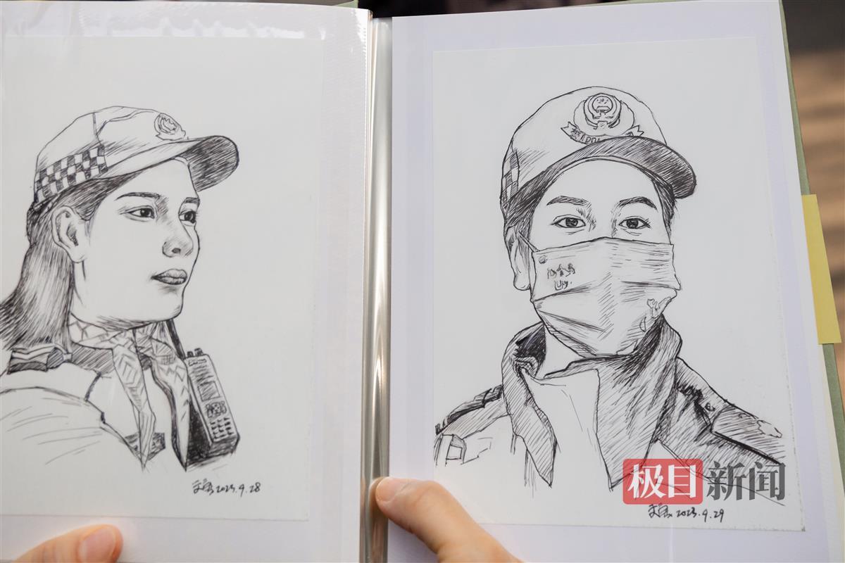 50多张钢笔绘制的肖像画,每个人的神韵都把握得恰到好处,汉警快骑机动队队员们纷纷围拢过来。