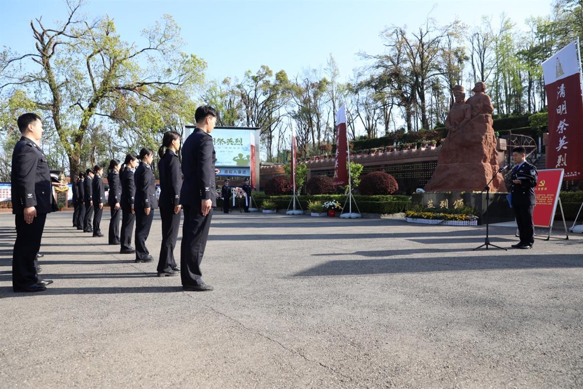 敬献花圈,鲜花簇拥,青年民警们依次向烈士纪念碑致敬,重温入党誓词。清明将至,3月30日上午,武汉东湖新技术开发区公安分局60名青年民警、辅警代表赴九峰山革命烈士陵园,开展“缅怀公安英烈 汲取奋进力量”活动,传承红色基因、凝聚青警力量。
