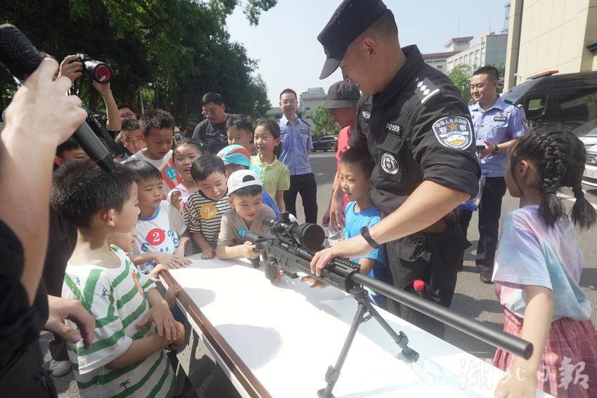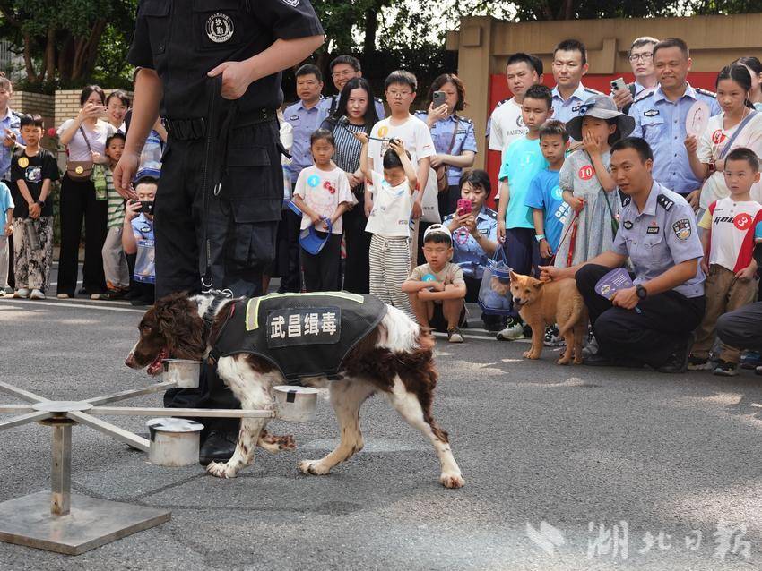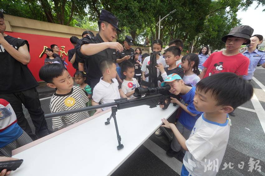 5月25日,武汉市公安局武昌区分局团委邀请四十多名可爱的“小警宝”们走进水果湖派出所警营,“零距离”体验警察爸爸、警察妈妈的工作环境,以别样的方式迎接即将到来的“六一”儿童节。警宝们观看了帅气的汉警快骑表演、缉毒警犬展示,近距离参观了狙击步枪等警务装备。大家还走进派出所指挥室和警营文化墙,深入了解了“110”是如何运转的,并聆听了英模的英勇事迹,沉浸式体验了警察爸妈的工作内容,进一步加深了警宝们对警察职业的理解和尊重。“我长大了也想当警察,可以吗?”在离开警营时,许多警宝与父母交流,自豪而期待地表达了他们作为“新一代”的警察梦。参加活动的民辅警们纷纷表示,能在警营和孩子一起过节,很幸福,很有意义。