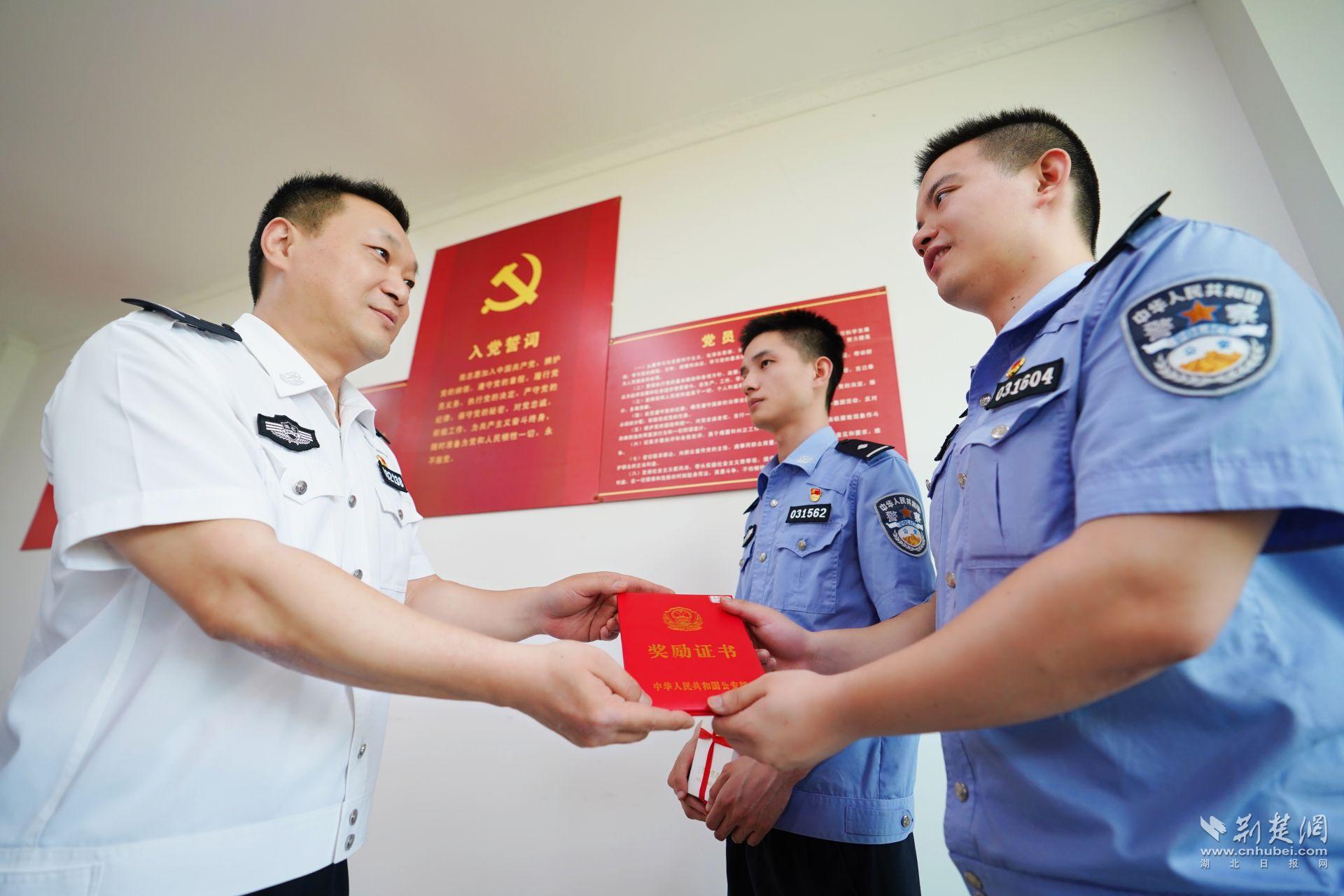 5月23日下午,武汉市公安局武昌区分局政治处主任栾伟芳赶到白沙洲街派出所,将一枚闪亮的三等功奖章和个人嘉奖证书分别送到青年民警向明洋和何宏升手中,表彰两人在打击犯罪中发挥的重要作用。