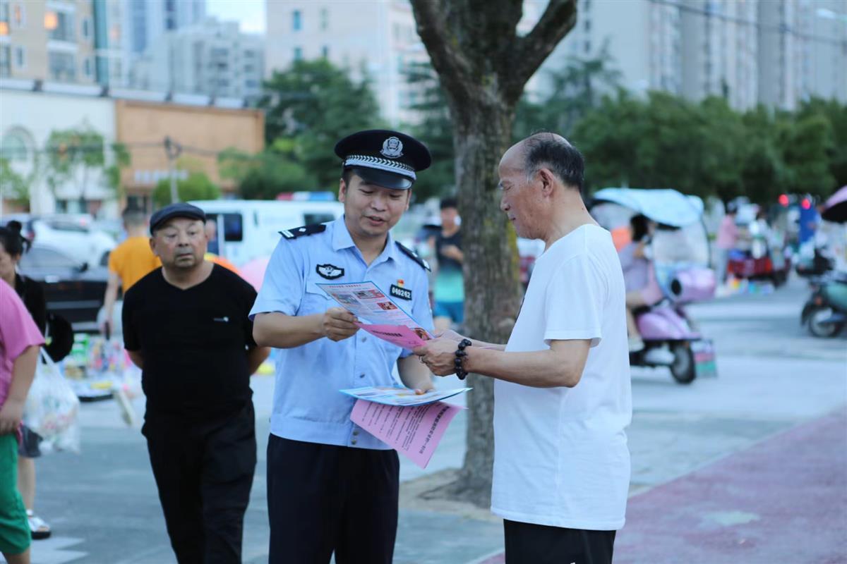 “转账汇款要核实,密码验证码勿泄露!”在城北夜市摊点,邾城所副所长沈火林一边带队进行治安巡逻,一边向食客们宣传反诈知识,提醒大家在享受美食的同时,也要守护好自己的钱袋子。