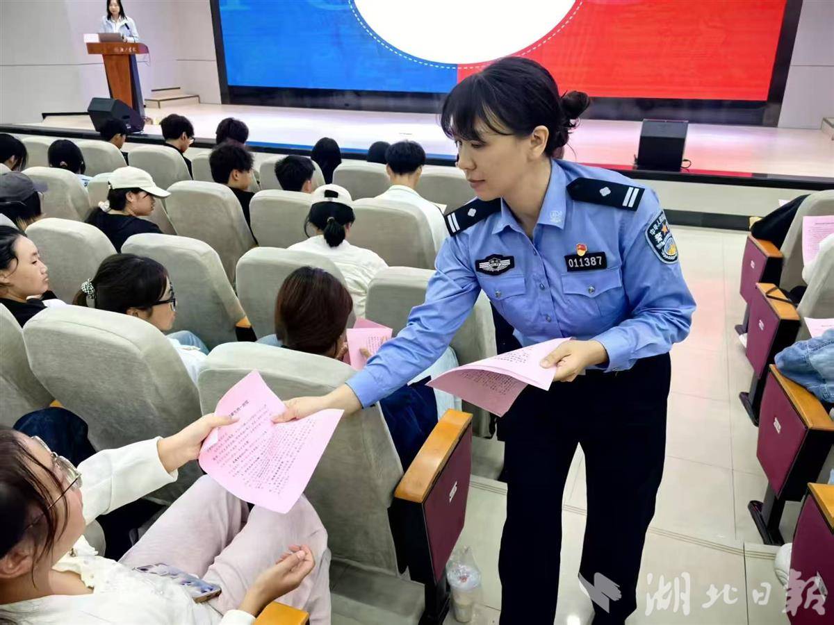 “新型毒品可能伪装成奶茶粉、巧克力等,大家在外出聚会时一定要提高警惕!”9月24日晚,湖北城市建设职业技术学院的报告厅内,民警王熠珺正在为学子们讲授“开学安全第一课”。她结合近年来发生的校园安全案例,围绕新型毒品防范、日常交通安全、宿舍消防安全等重点内容,用通俗易懂的语言为学生们敲响安全警钟。