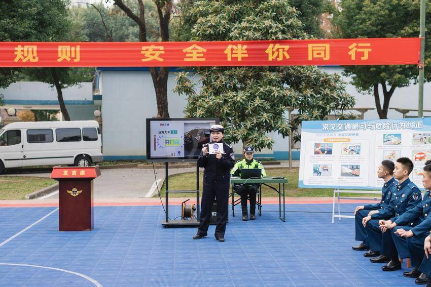 课堂伊始,主讲人张慧警官摒弃传统说教模式,以“身边事”为切入点,结合部队官兵日常出行场景,梳理了闯红灯、酒驾醉驾、忽视车辆盲区等易引发交通事故的“交通陋习”。她通过播放真实事故视频、提炼安全关键词等方式,直观展现了各类交通隐患的危害——从路口抢行的瞬间碰撞,到酒驾后失控的车辆轨迹,再到大型车辆盲区内的“看不见的危险”,每一个案例都让官兵们深刻认识到“细节关乎安全”,进一步强化了“文明出行、安全第一”的理念。