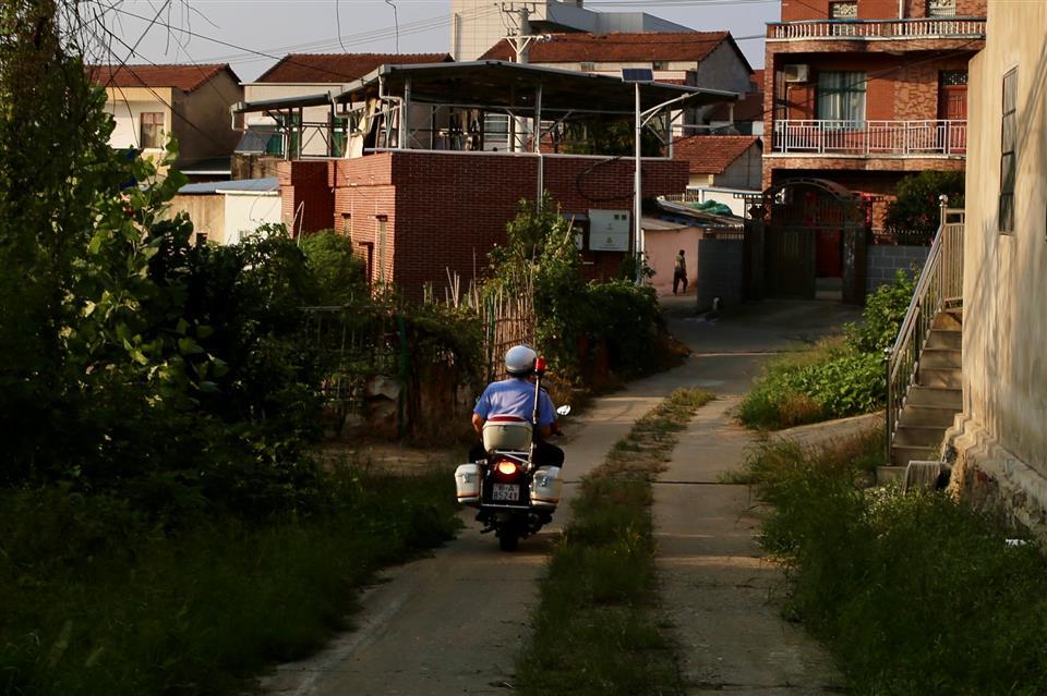 而在新洲区的村湾里,40辆新配发的警用摩托车,成了巡中快反的“利器”。9月17日上午,凤凰镇李家岗村的小路上,两侧的树林枝叶繁茂,穿过林间时,叶子簌簌作响。村民李先生正和光伏业务员小雷吵得不可开交:“光伏板装在我家院子里,凭啥不归我?”“合同里写了维护归我们,你不能自己拆!”