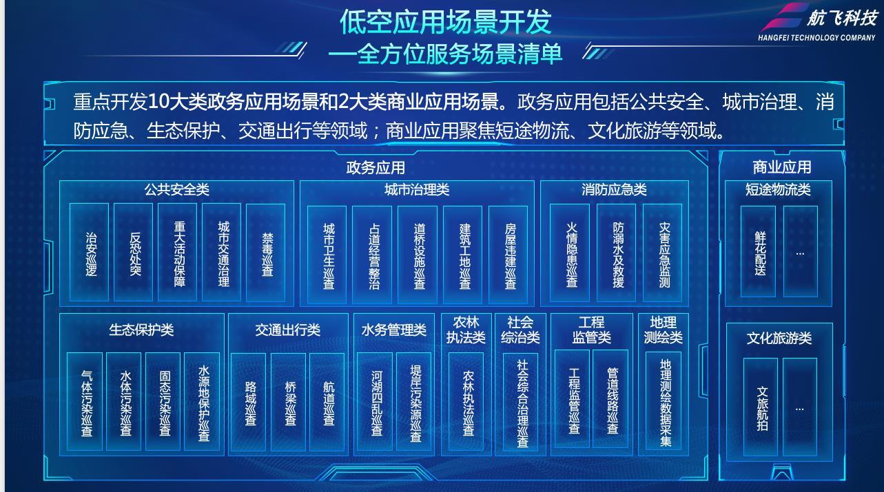 推介会披露,武汉计划布设1000套无人机自动机库,今年将完成一期400套建设,实现三环内全域覆盖、三环外重点区域覆盖率60%以上。位于航发智慧城的空天地一体化运营管理中心正在筹建中,设有66个飞行席位,预计年底投入使用,以实现“统揽一网、统管一体、联动一体”的目标。项目规划了十大类42个政务场景和5大类11个商业场景。政务应用涵盖公共安全、城市管理、消防应急等领域,可进行治安巡查、违章识别、火情预警等任务。商业应用聚焦物流配送和文旅服务。