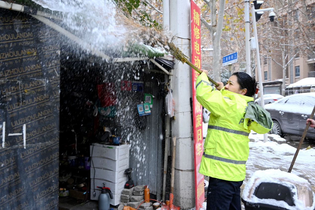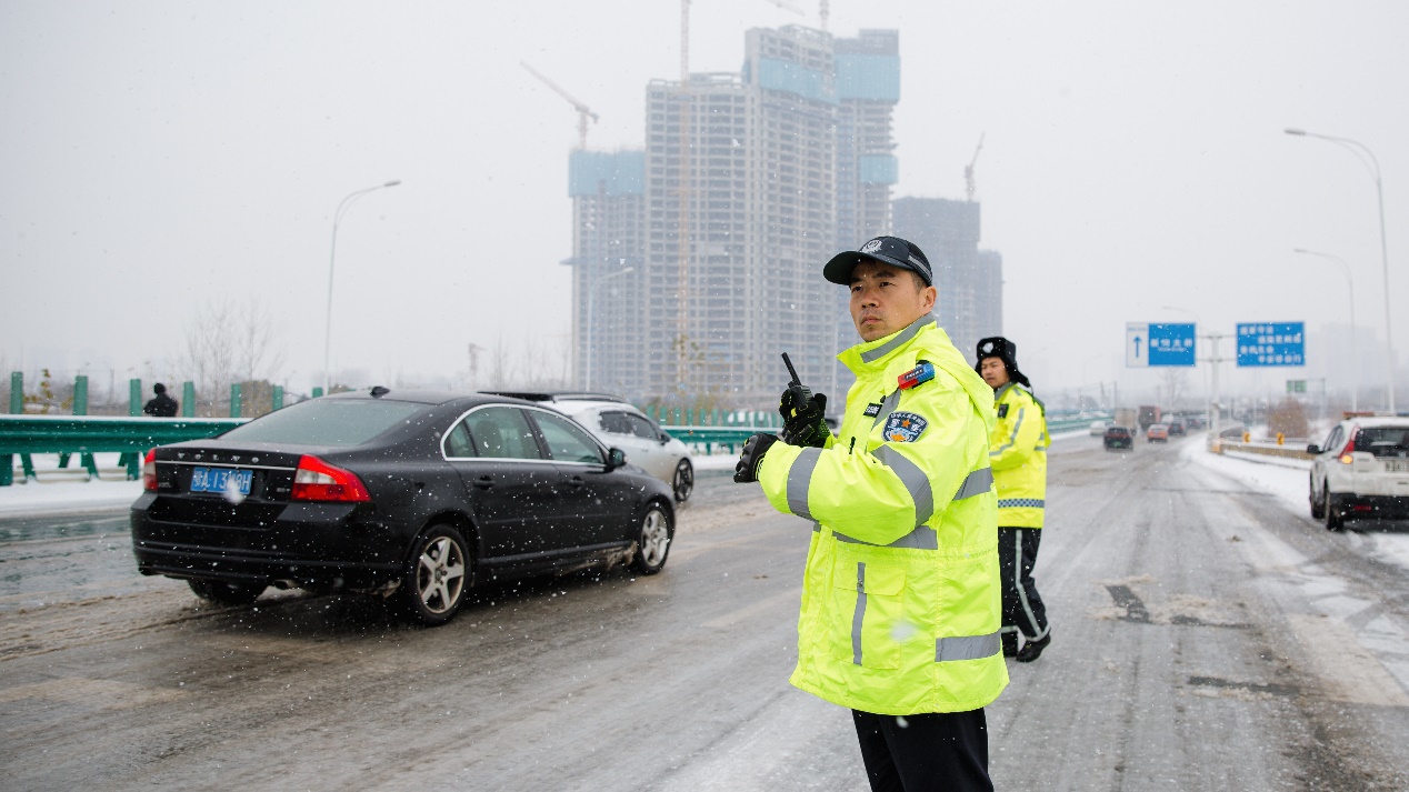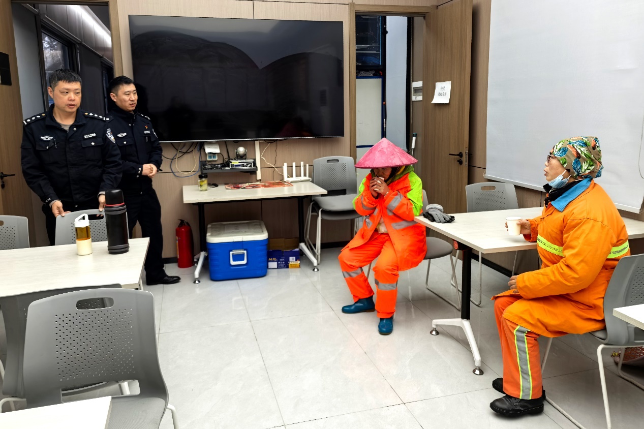 严格落实领导带班、值班备勤等制度,确保紧急情况第一时间响应、处置、反馈。全面加强一线执勤民辅警保障,配齐挂肩警示灯、发光指挥棒等防护装备,提供热水、保暖物资,在守护群众安全的同时,全力保障民警辅警身心健康。第七综合警务服务站教导员张伟等人看到环卫工人冒雪作业,主动邀请其进屋取暖、递上热水,用暖心举措凝聚起警民同心抗雪的强大合力。