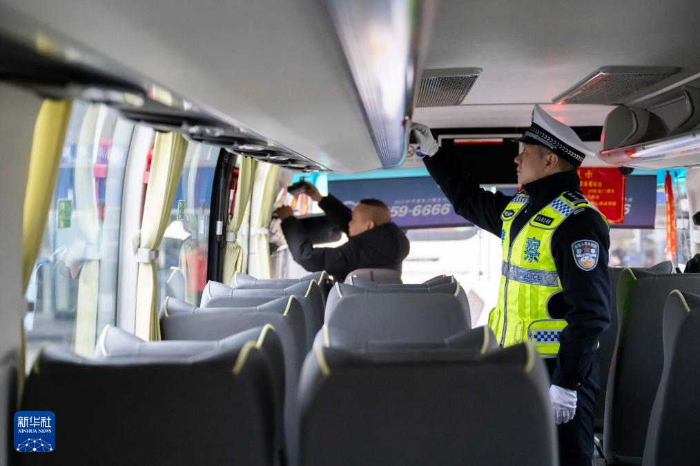 春运将至,湖北省武汉市公安局武昌区分局交通管理大队与宏基长途客运汽车站工作人员共同开展春运安全专项检查工作,对长途客运车辆进行全面“体检”,从严排查车辆安全隐患,守护旅客的平安返乡路。