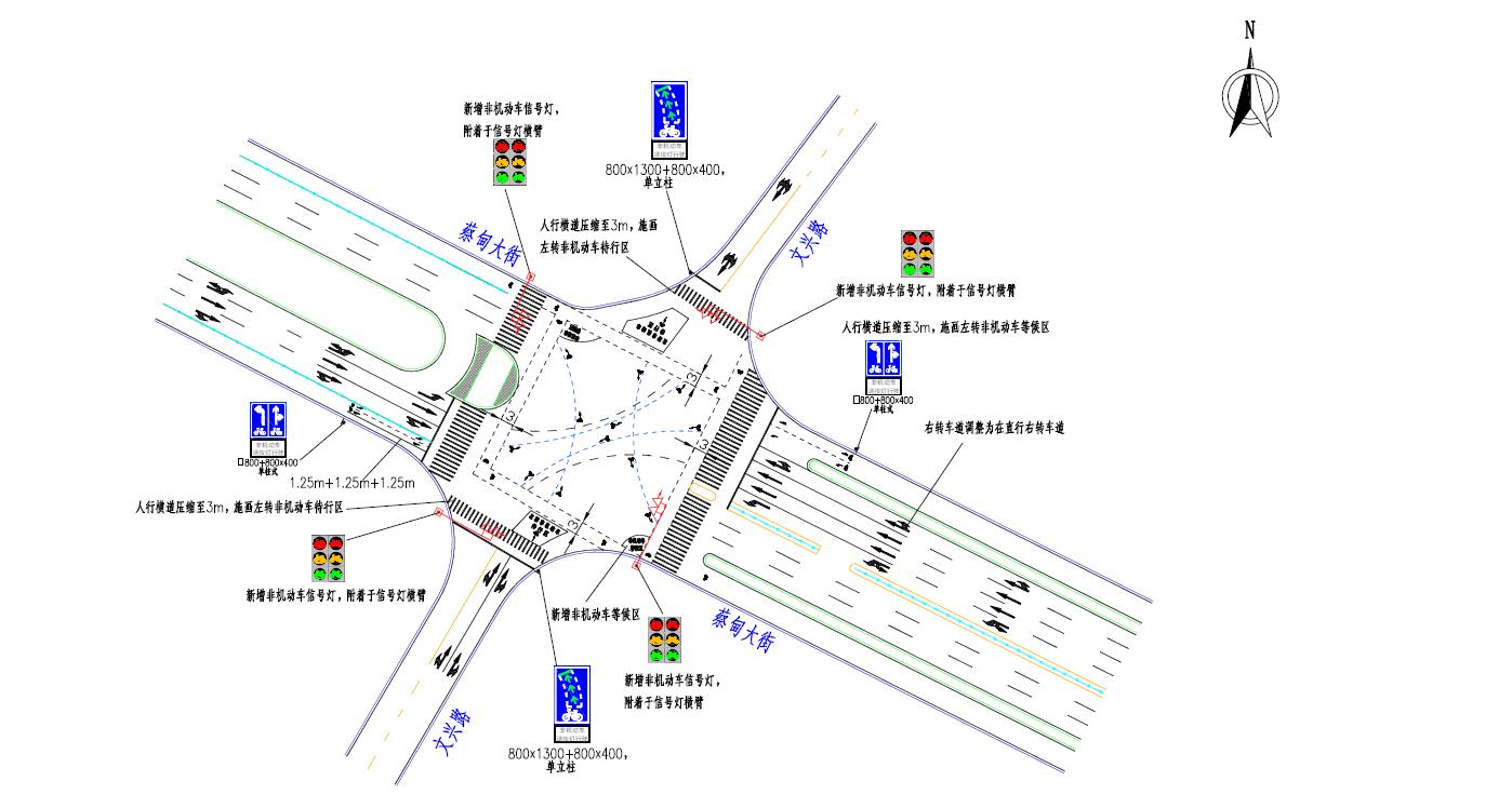 在蔡甸区莲花湖大道与茂盛路交叉口,市民朱女士的日常通勤有了新变化。“现在比以前过街效率高多了,秩序更好也更安全了。”让她感到安心的,是路口新增的非机动车专用等候区、清晰的信号灯,以及那条为她这样左转骑行族节省下约40米距离的切弯导流线。