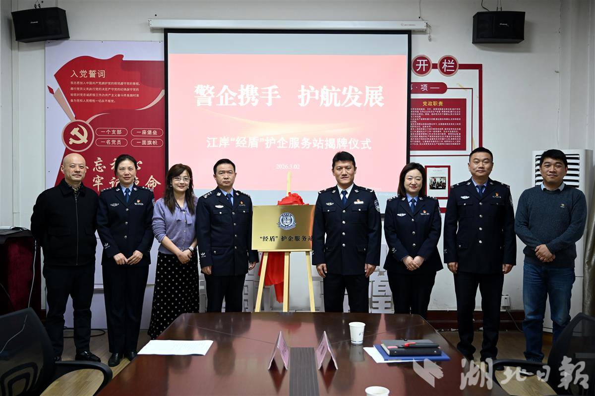 湖北日报讯(记者杨然、通讯员陈善文、李瑞丽)3月2日,武汉市公安局经侦支队联合江岸区分局,在武汉市中小企业协会举行“经盾”护企服务站揭牌仪式。服务站将聚焦企业经营发展中的法治需求与风险痛点,提供全周期、专业化的法治保障与涉企服务。