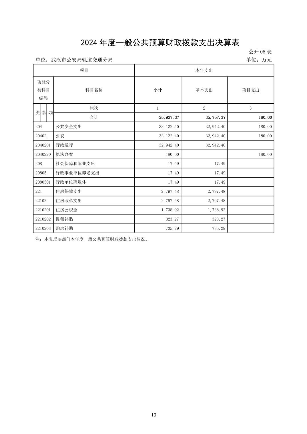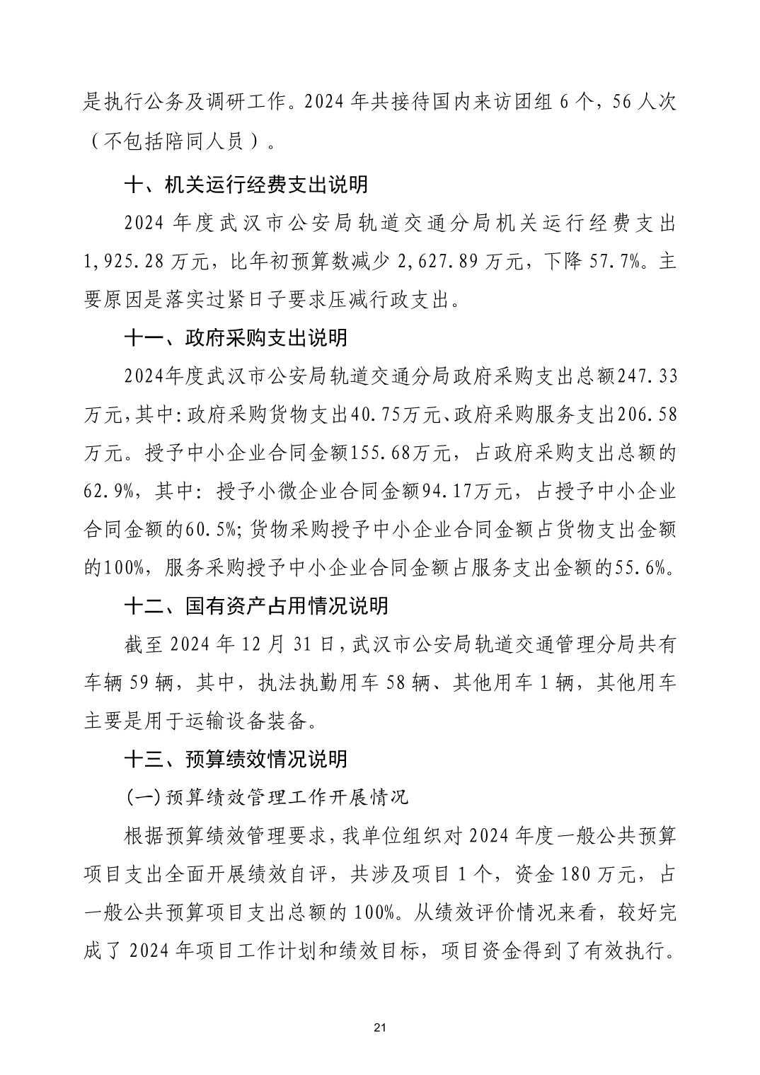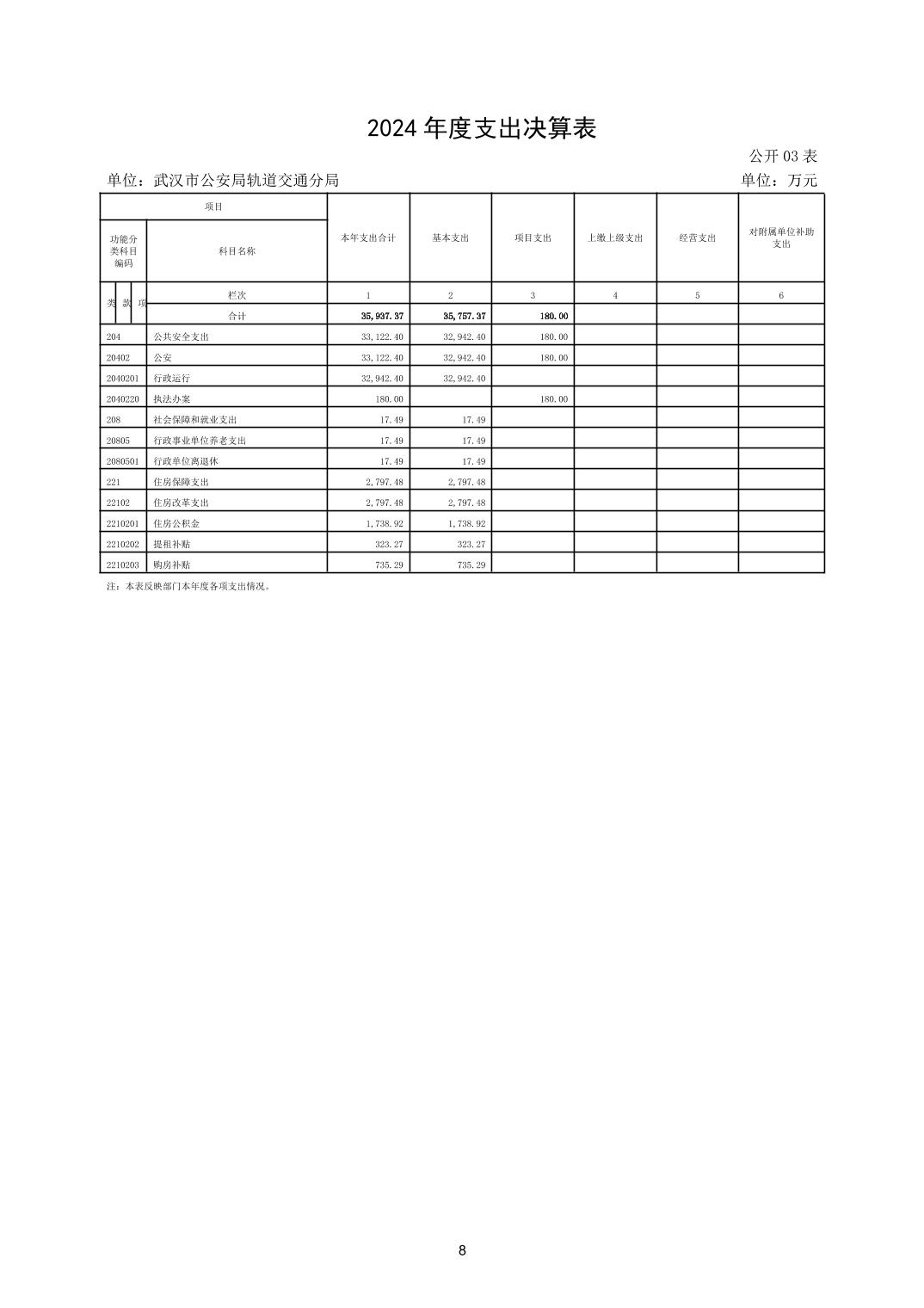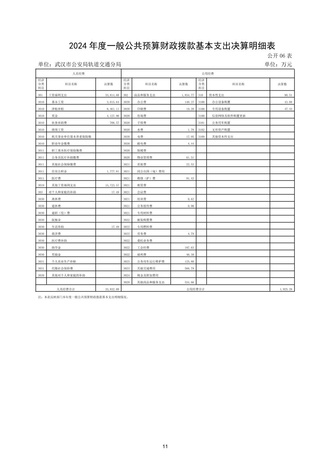 武汉市公安局轨道交通分局2024年度决算公开