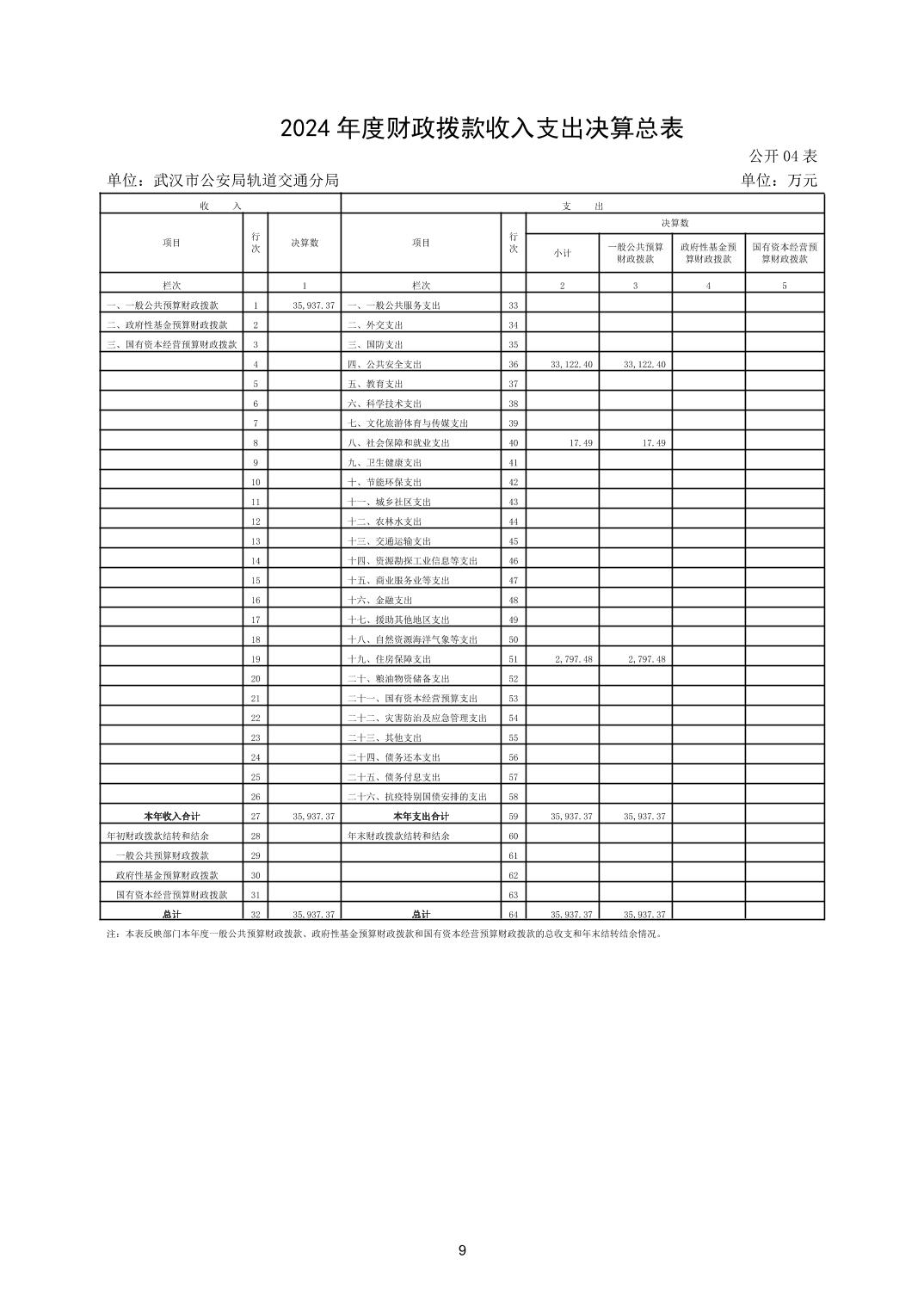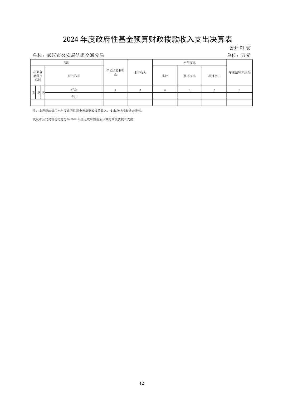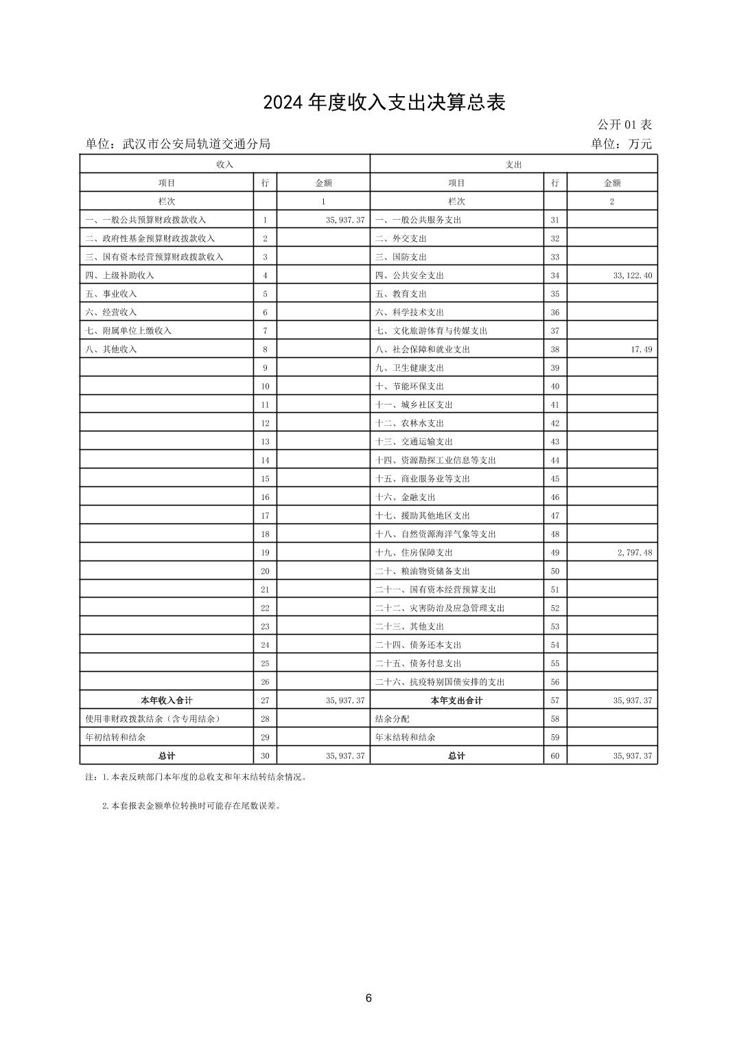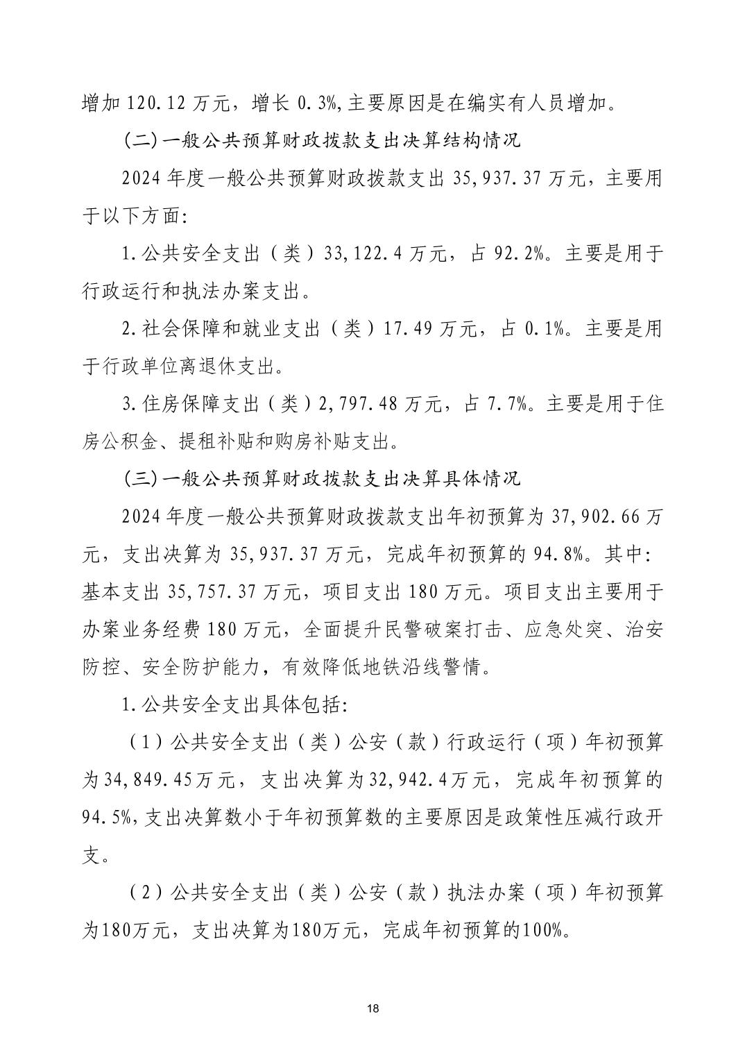 武汉市公安局轨道交通分局2024年度决算公开