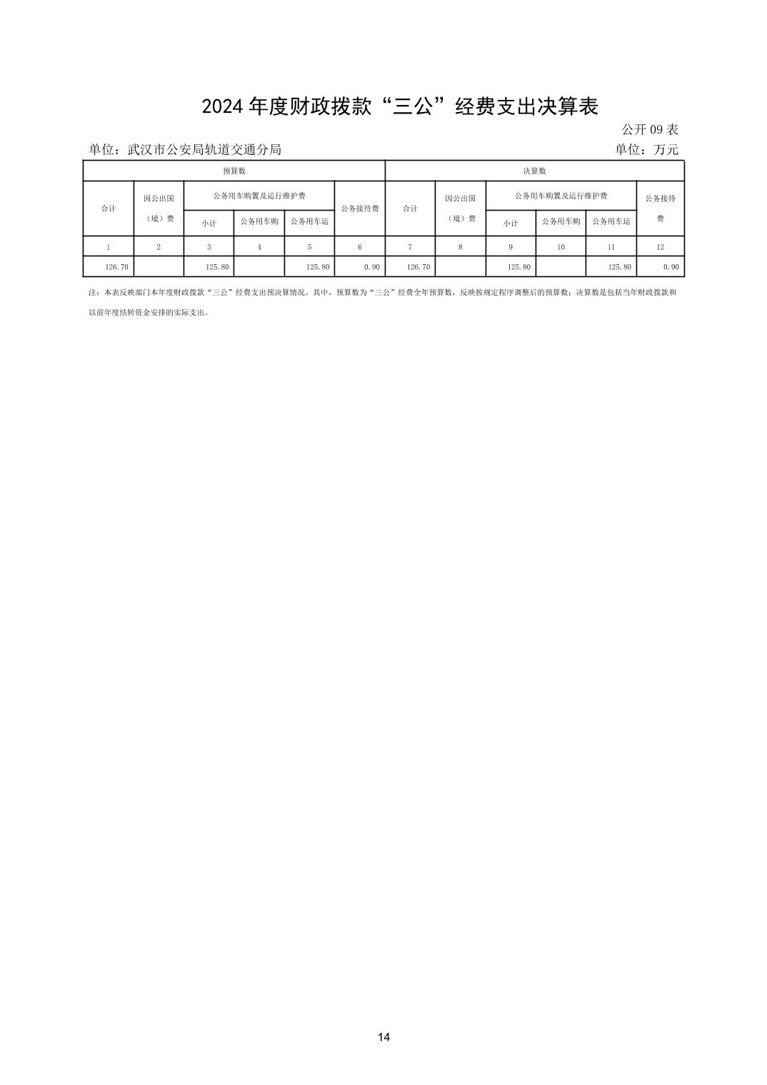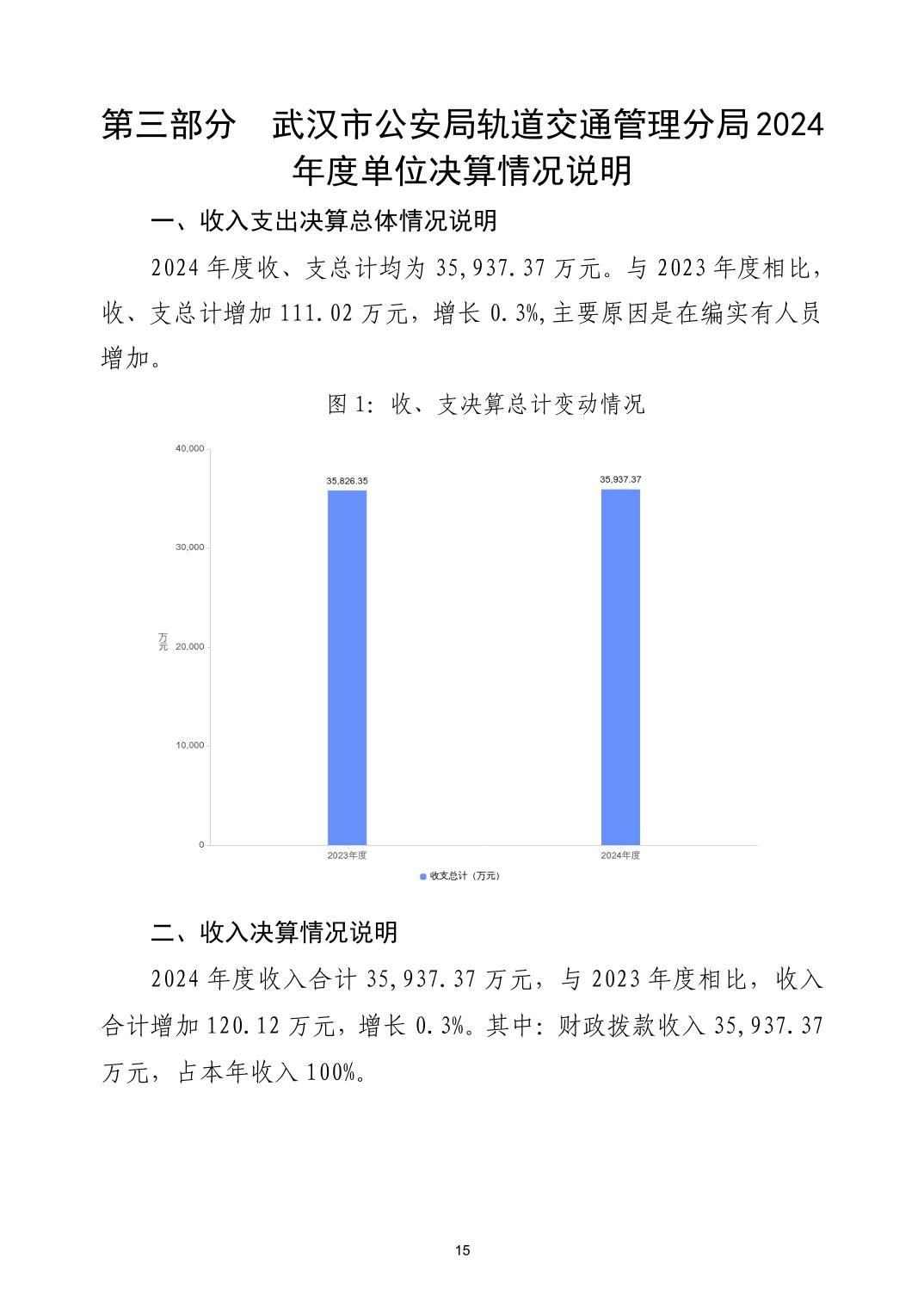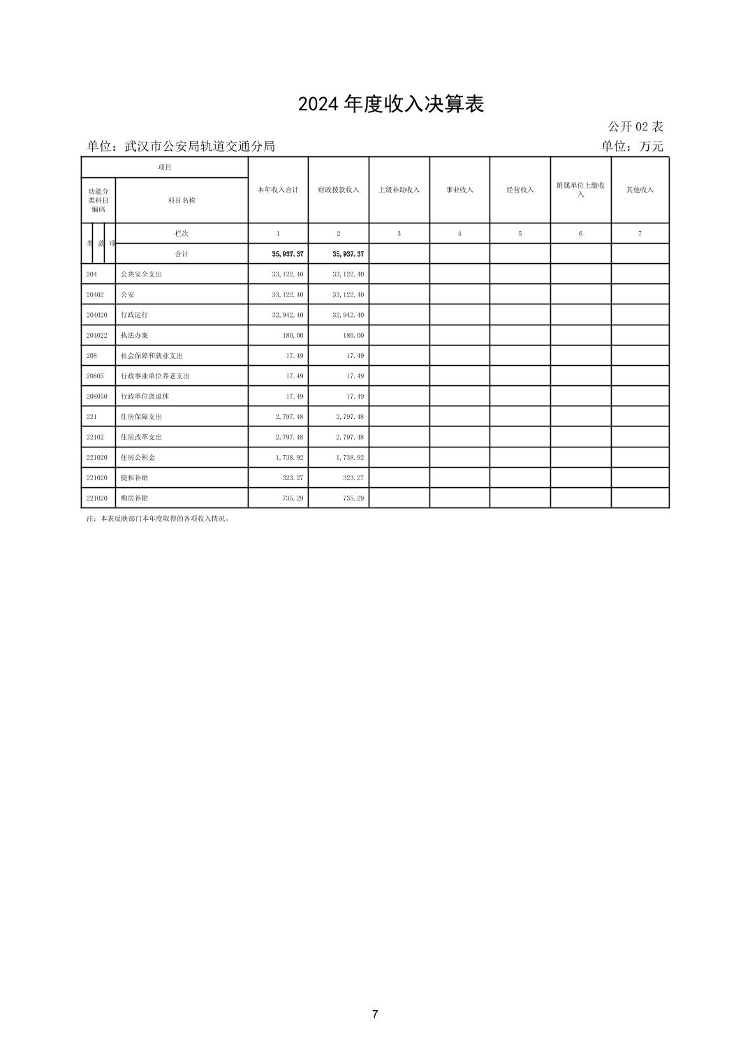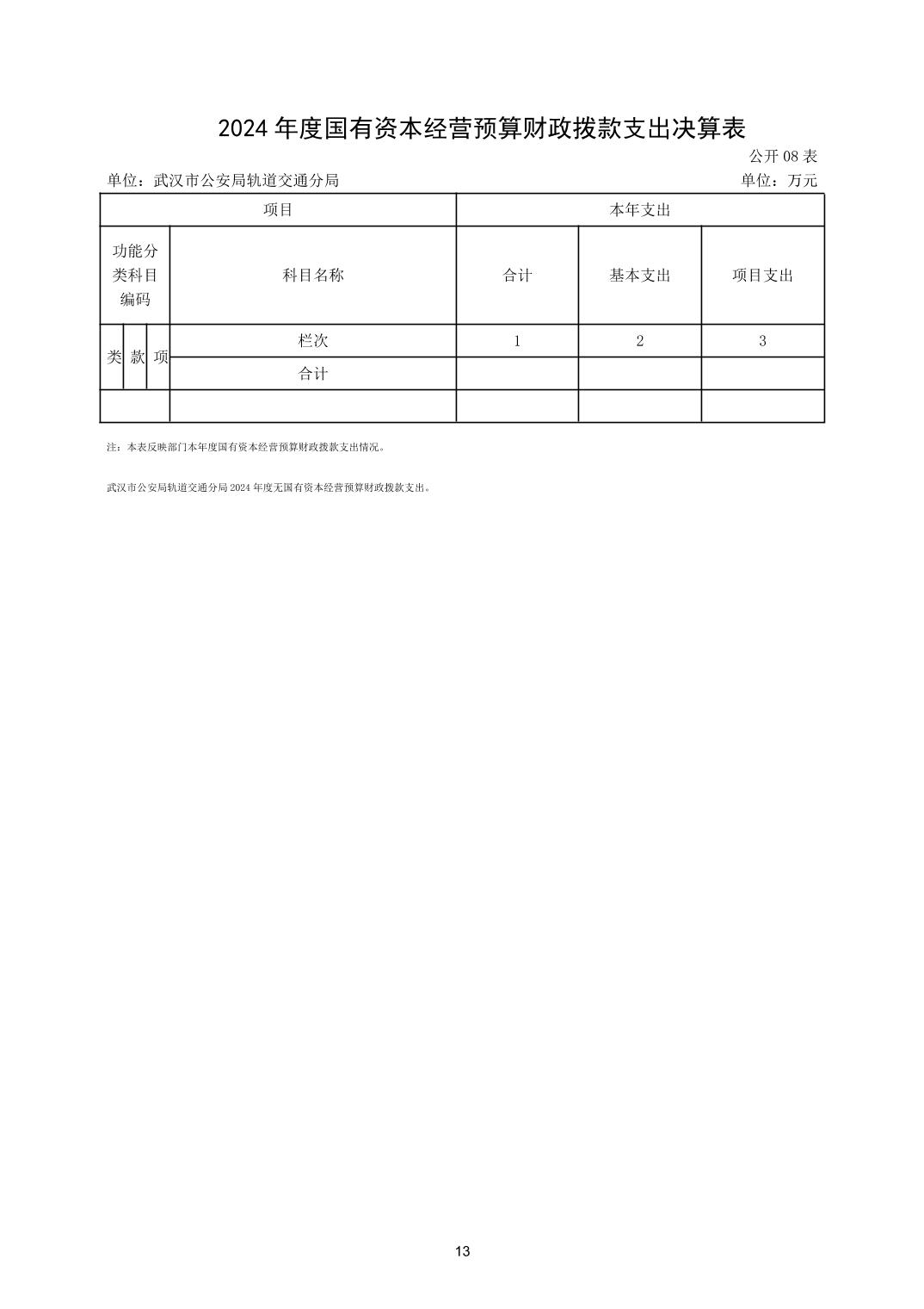 武汉市公安局轨道交通分局2024年度决算公开