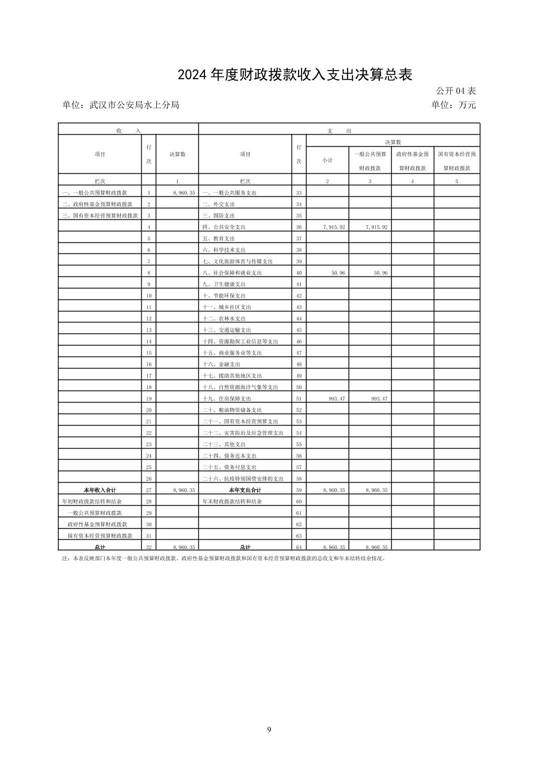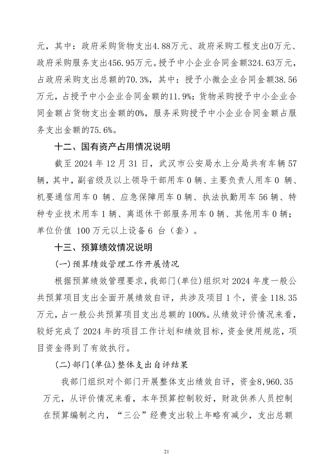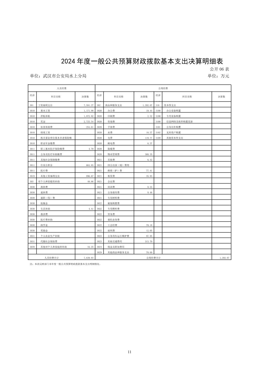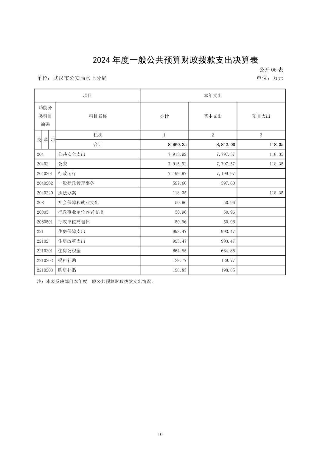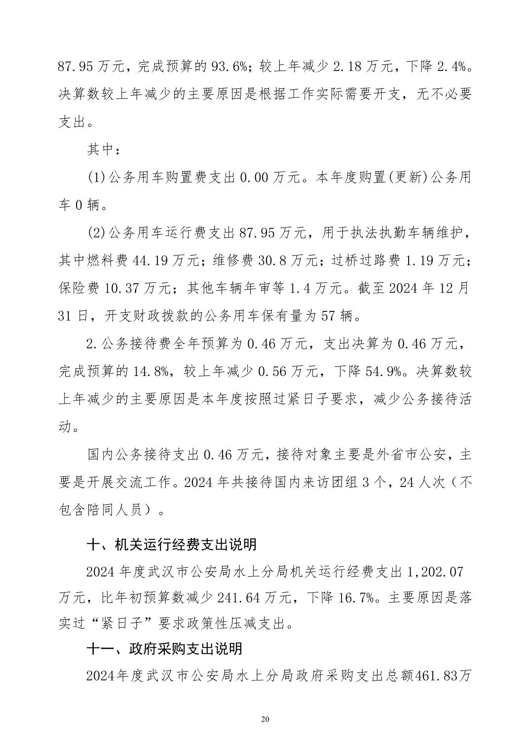 武汉市公安局水上分局2024年度决算公开
