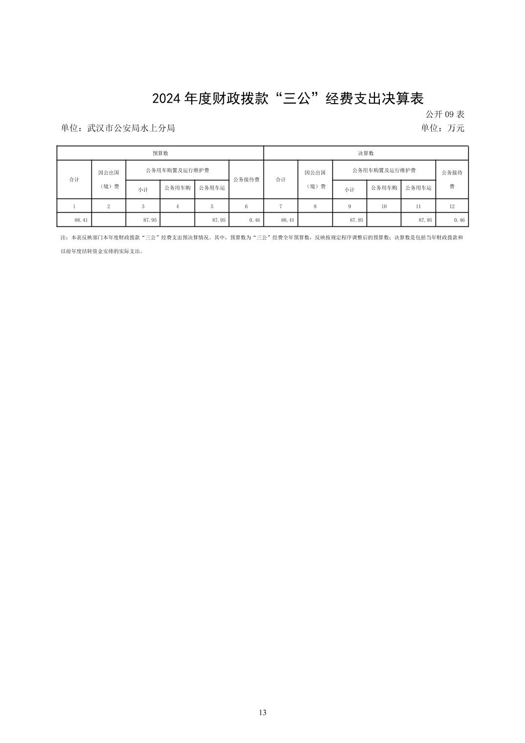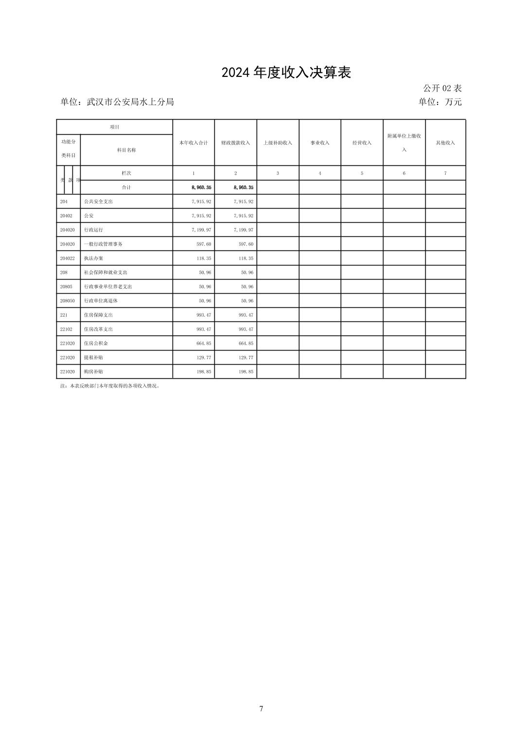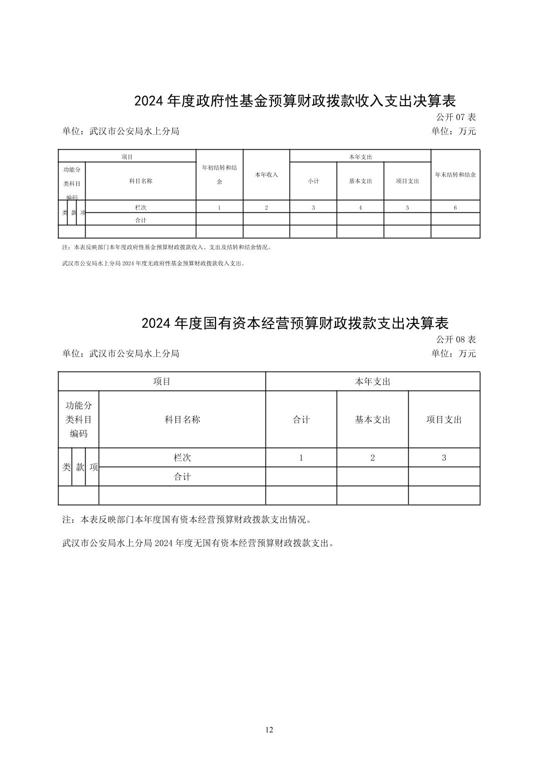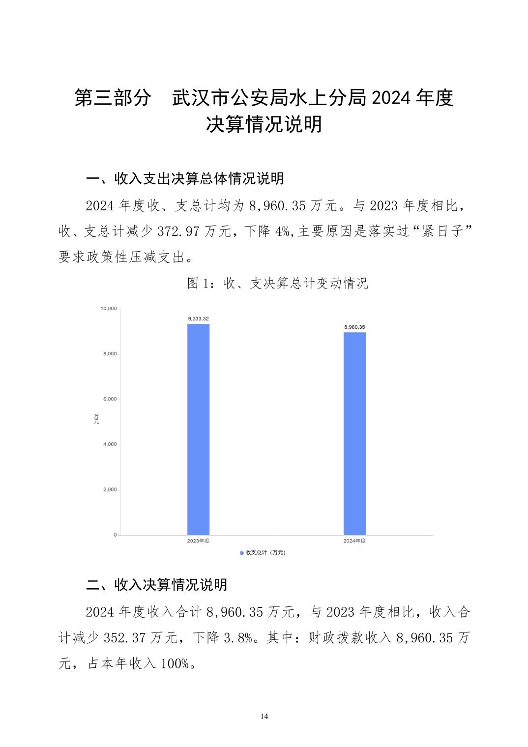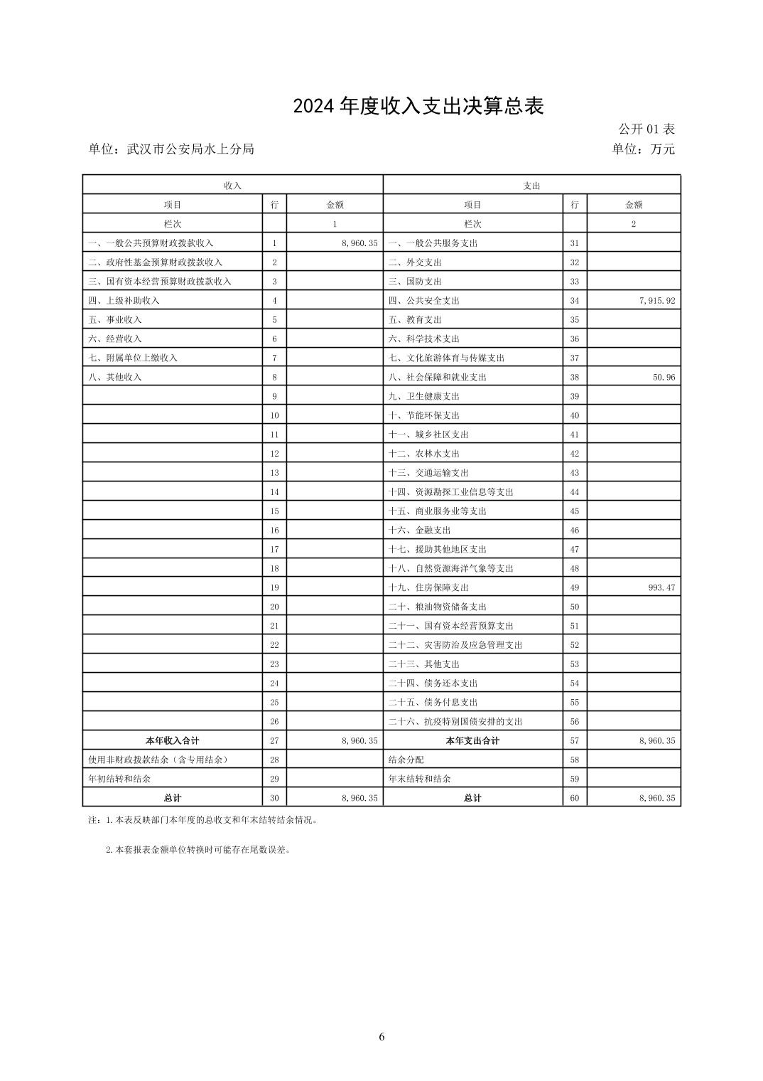武汉市公安局水上分局2024年度决算公开