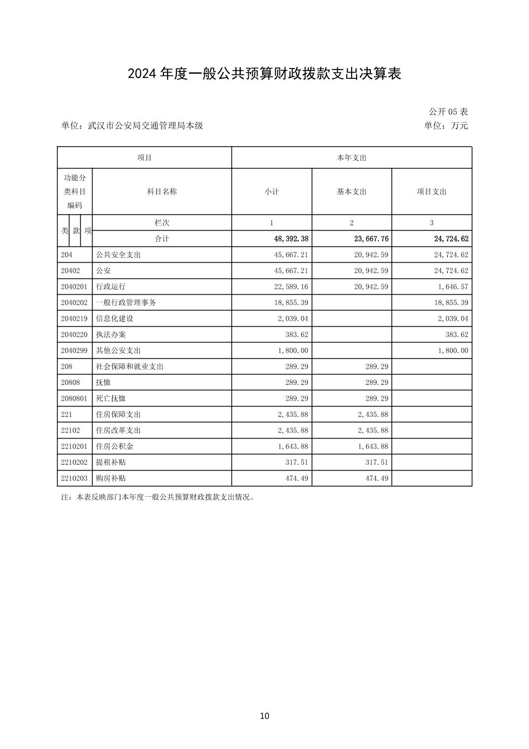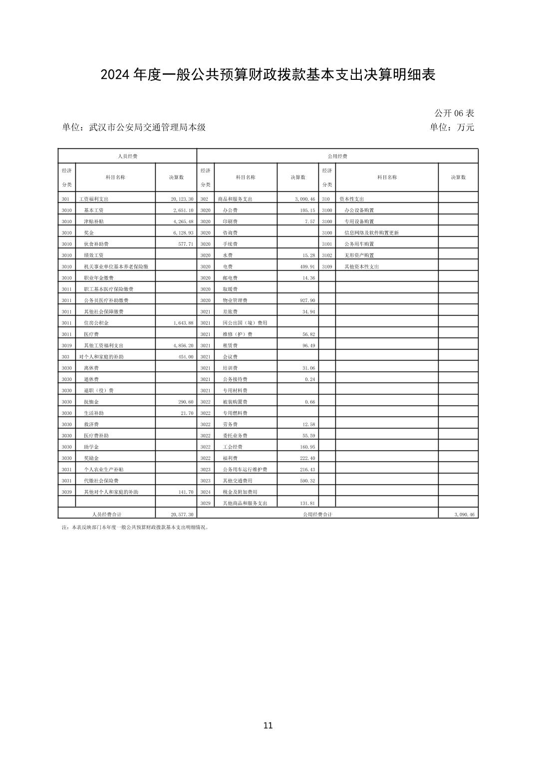 武汉市公安局交通管理局(本级)2024年度决算公开