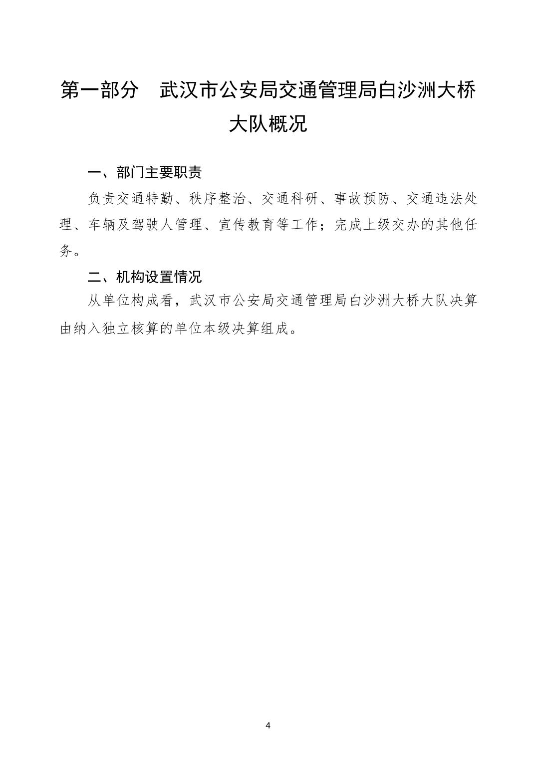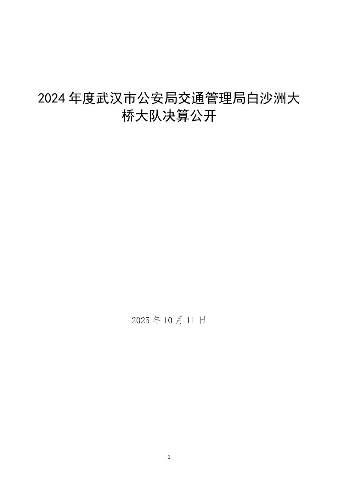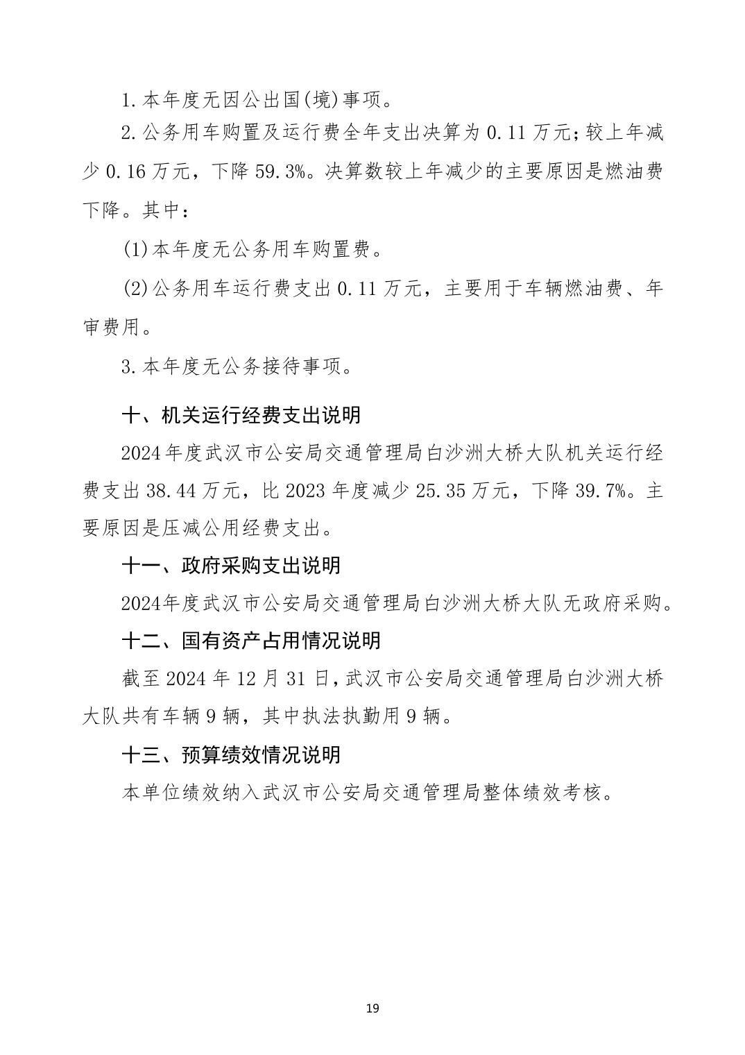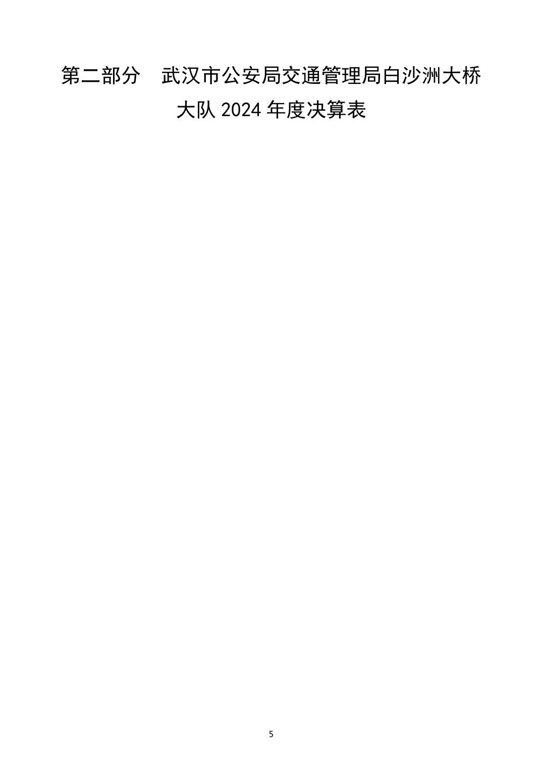 武汉市公安局交通管理局白沙洲大桥大队2024年度决算公开
