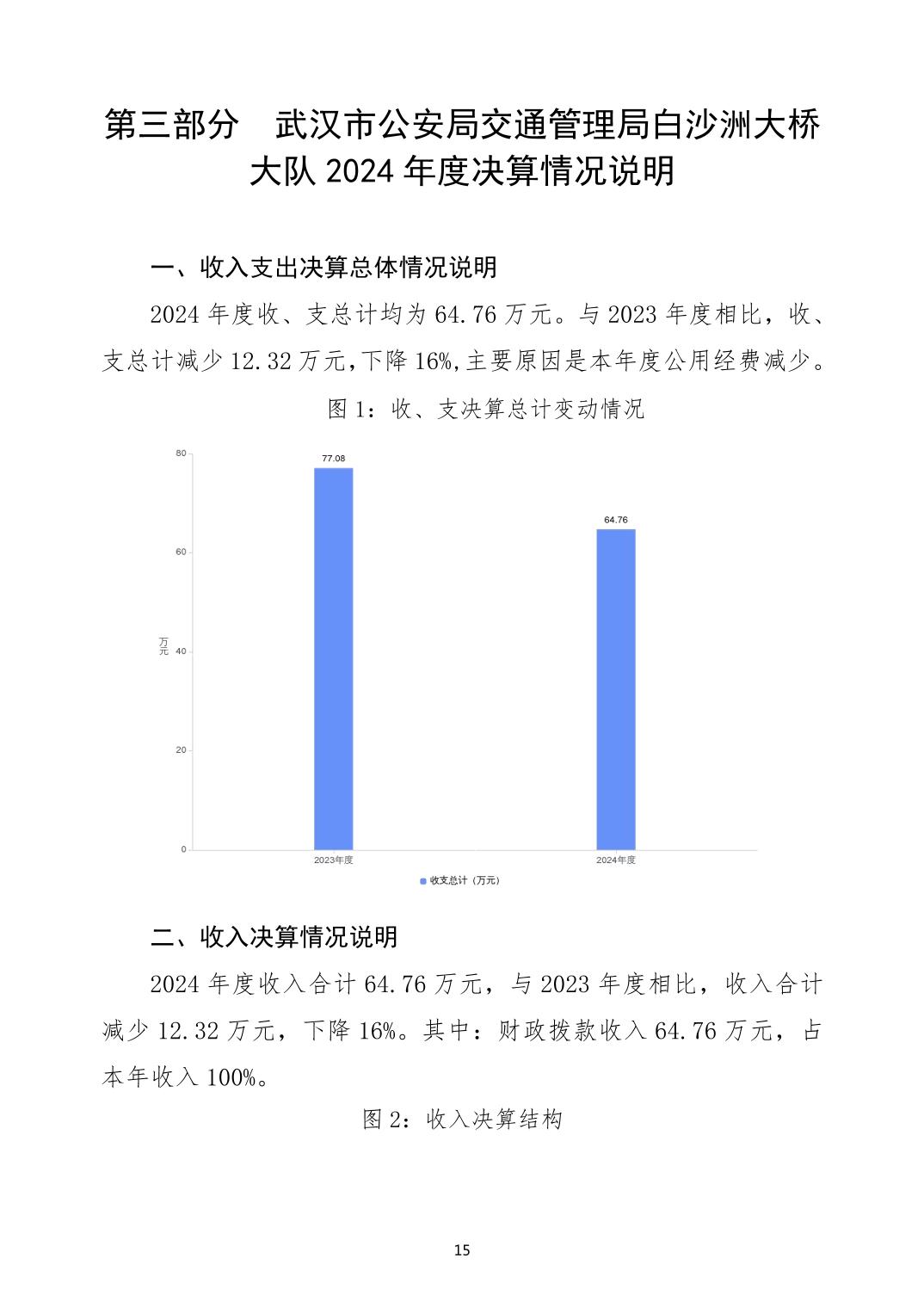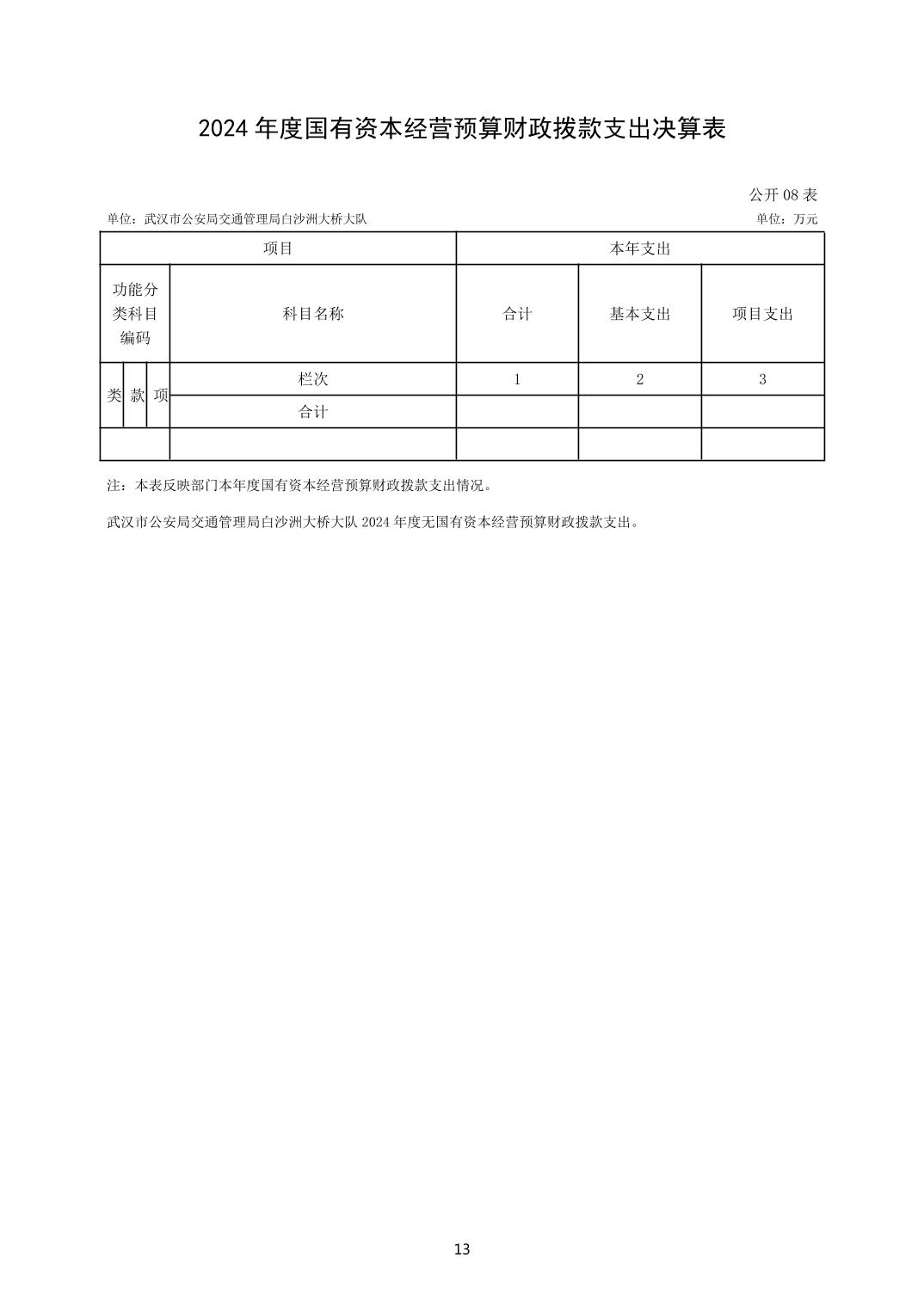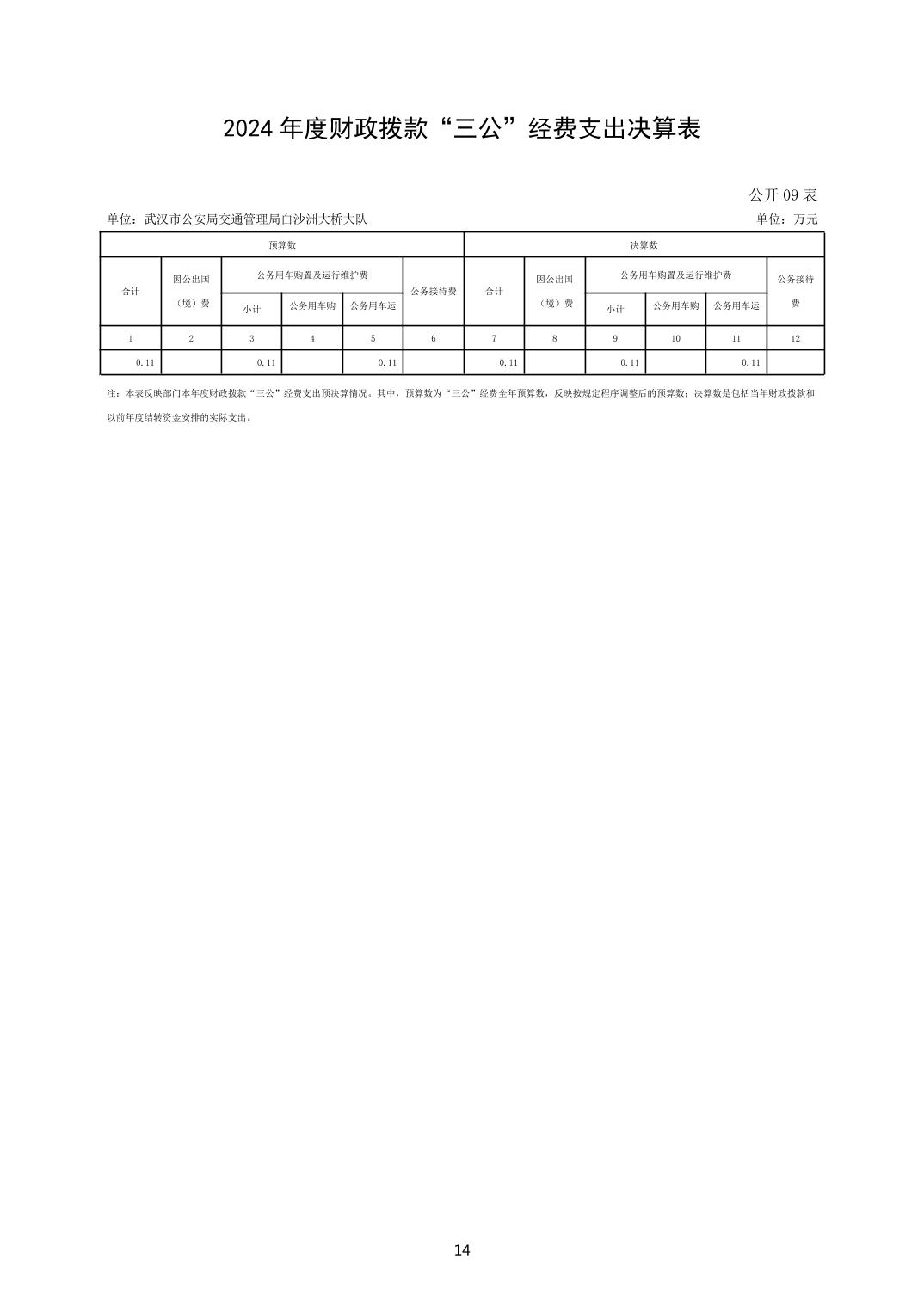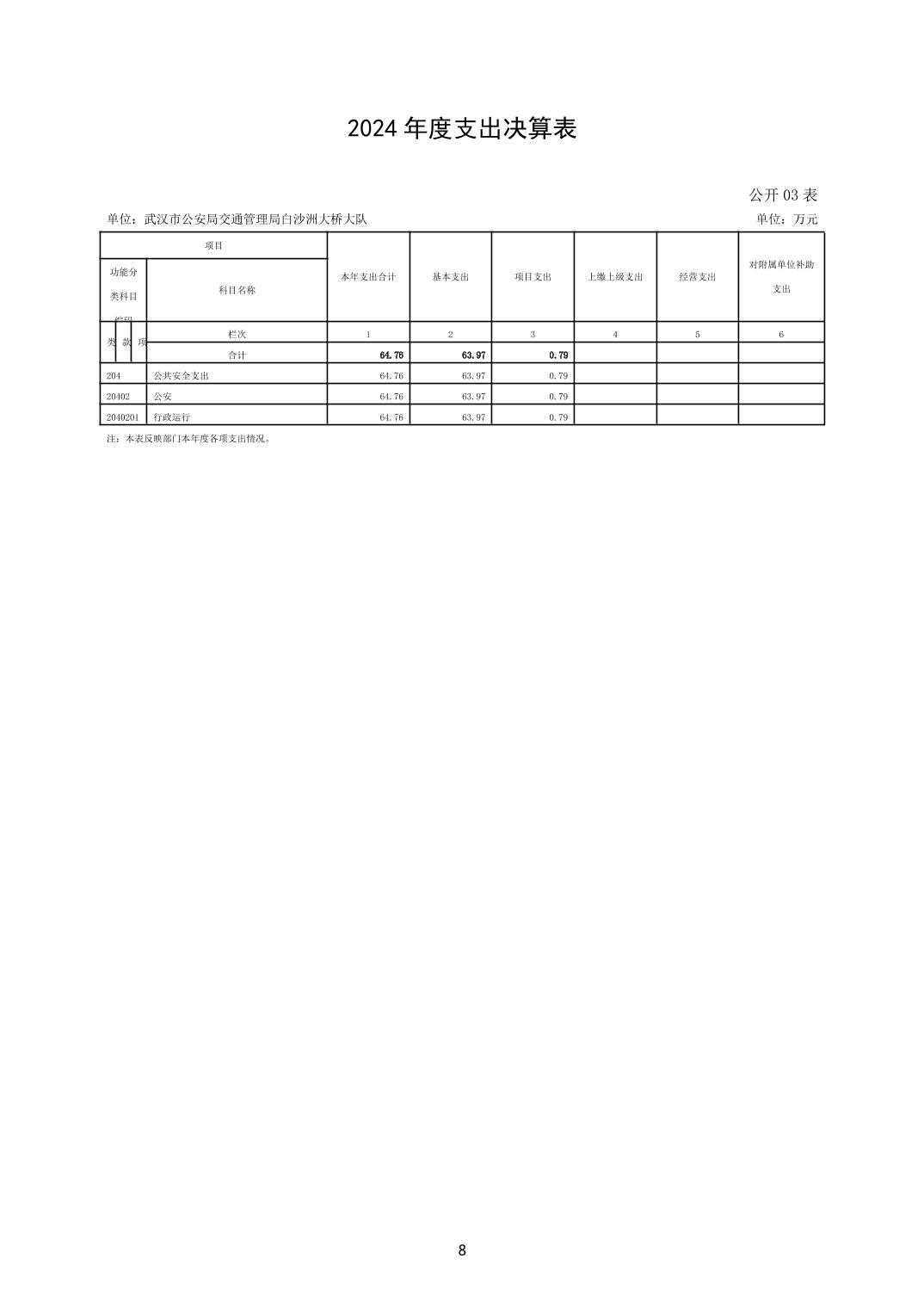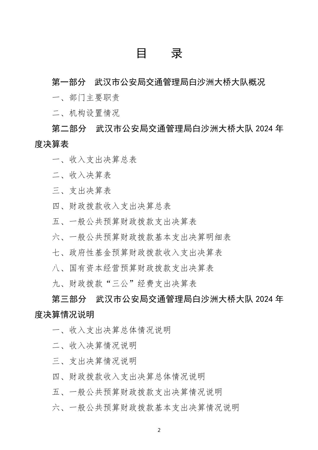 武汉市公安局交通管理局白沙洲大桥大队2024年度决算公开