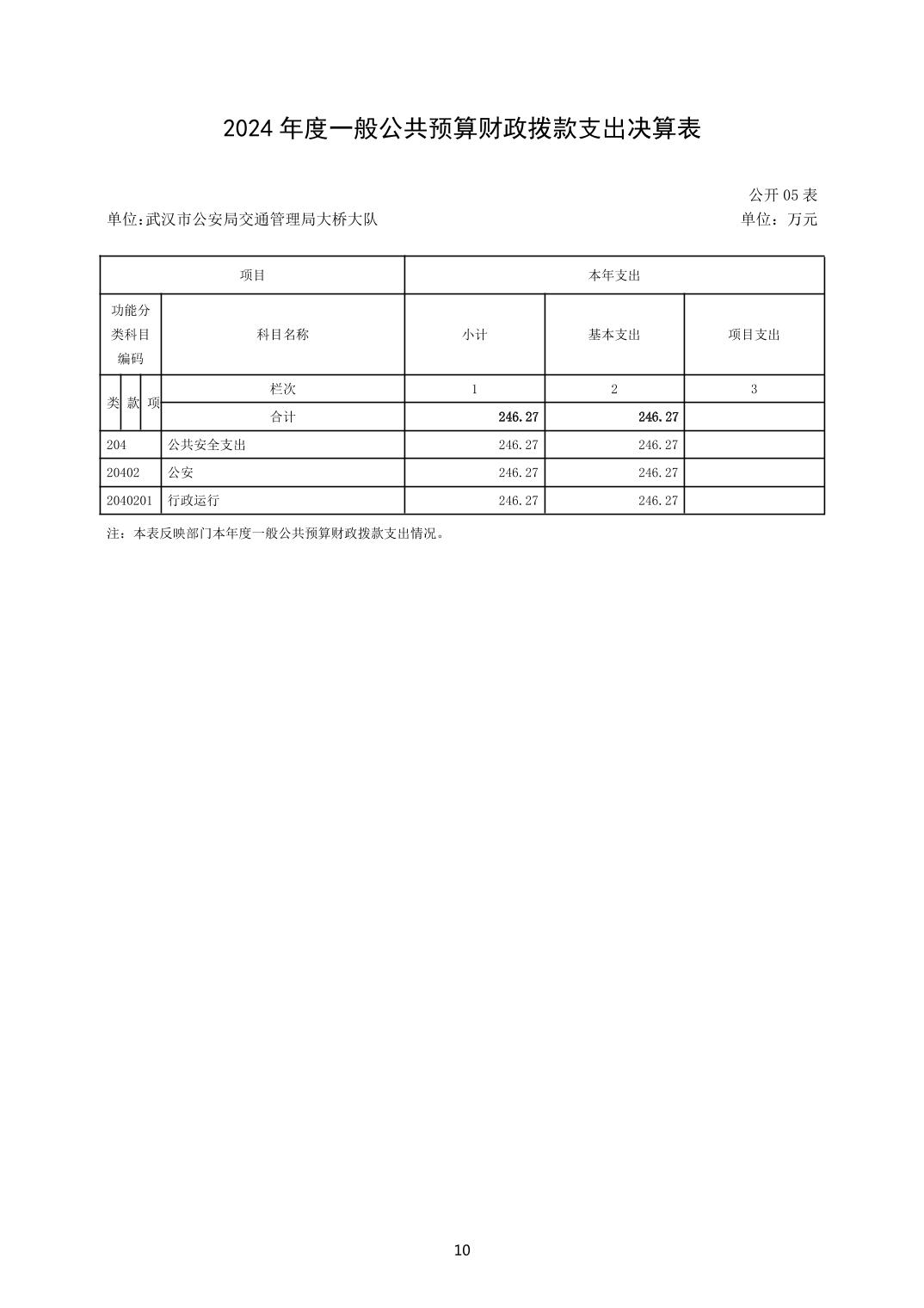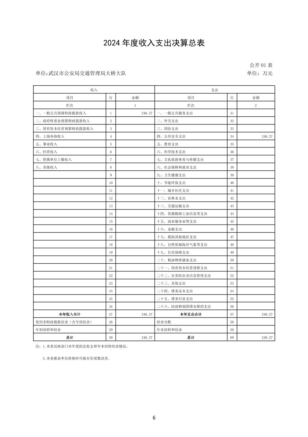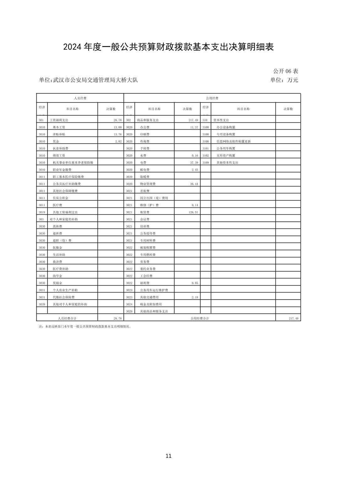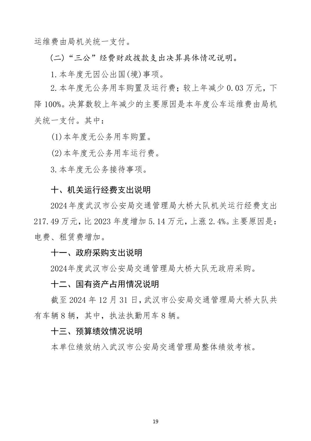 武汉市公安局交通管理局大桥大队2024年度决算公开